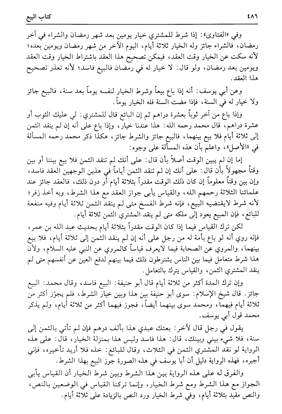 والفرق له على هذه الرواية بين هذا الشرط وبين شرط الخيار أن القياس يأبى الجواز مع هذا الشرط ومع شرط الخيار، وإنما تركنا القياس في الوضعين بالنص، والنص مقيد بثلاثة أيام، وفي شرط الخيار ورد النص بالزيادة على ثلاثة أيام.