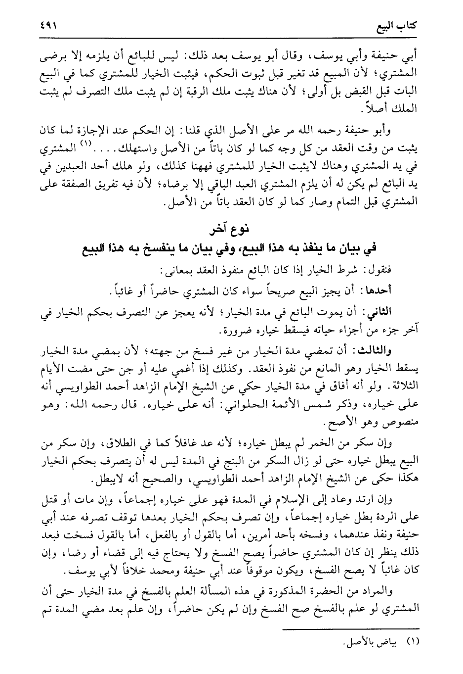 نوع آخر في بيان ما ينفذ به هذا البيع، وفي بيان ما ينفسخ به هذا البيع