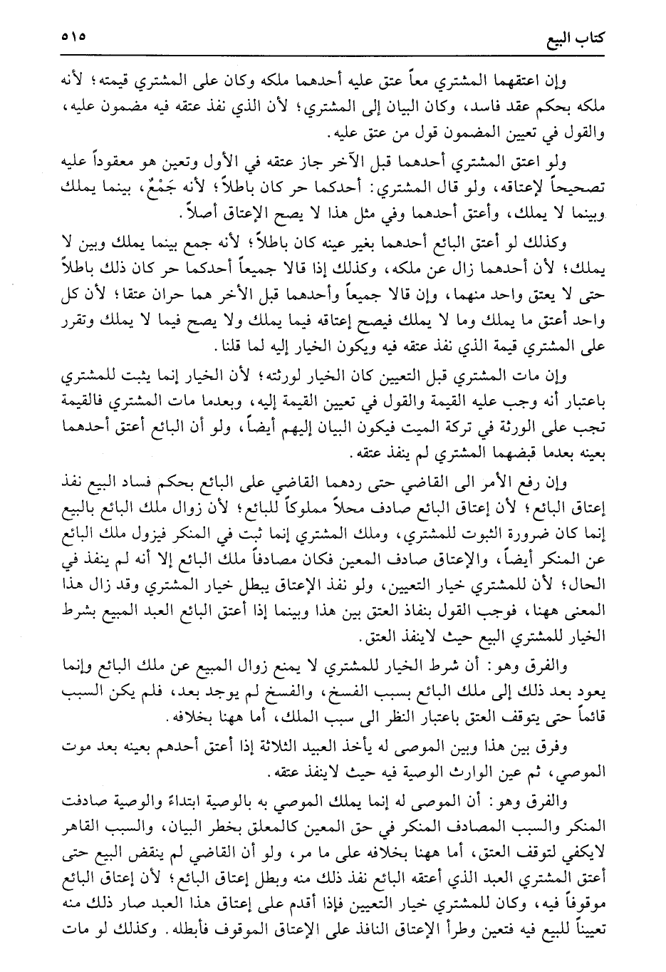 وكذلك لو أعتق البائع أحدهما بغير عينه كان باطلاً؛ لأنه جمع بينما يملك وبين لا يملك؛ لأن أحدهما زال عن ملكه، وكذلك إذا قالا: جميعاً أحدكما حر كان ذلك باطلاً حتى لا يعتق واحد منهما، وإن قالا: جميعاً وأحدهما قبل الأخر هما حران عتقا؛ لأن كل واحد أعتق ما يملك وما لا يملك فيصح إعتاقه فيما يملك ولا يصح فيما لا يملك وتقرر على المشتري قيمة الذي نفذ عتقه فيه ويكون الخيار إليه لما قلنا.