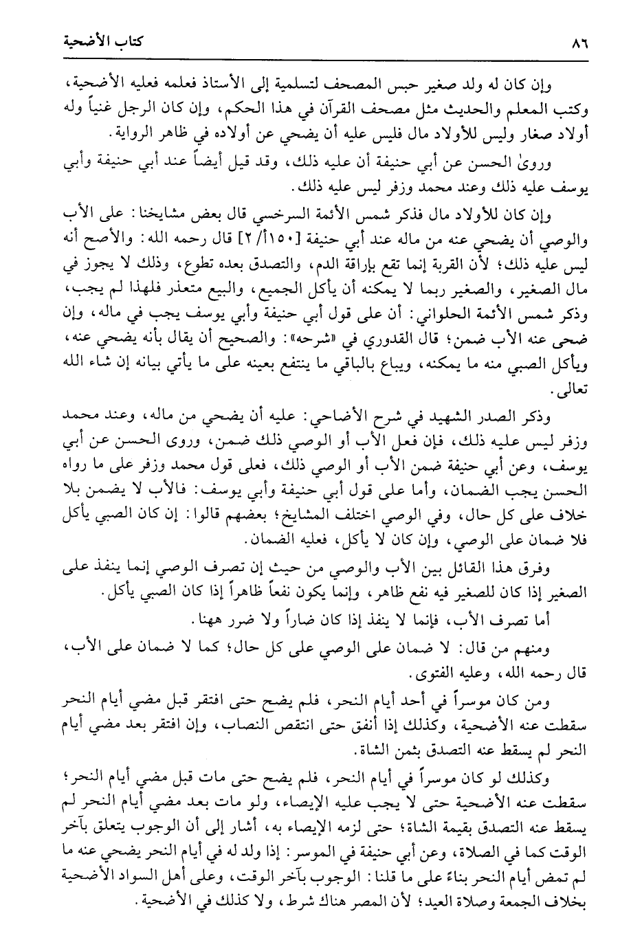 وإن كان له ولد صغير حبس المصحف لتسلمية إلى الأستاذ فعلمه فعليه الأضحية، وكتب المعلم والحديث مثل مصحف القرآن في هذا الحكم، وإن كان الرجل غنياً وله أولاد صغار وليس للأولاد مال فليس عليه أن يضحي عن أولاده في ظاهر الرواية.