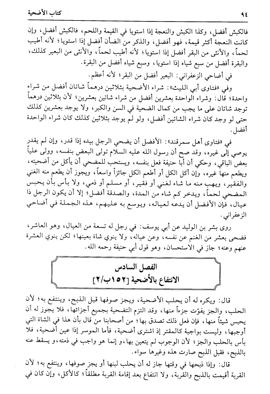 الفصل السادس الانتفاع بالأضحية (152ب/2)