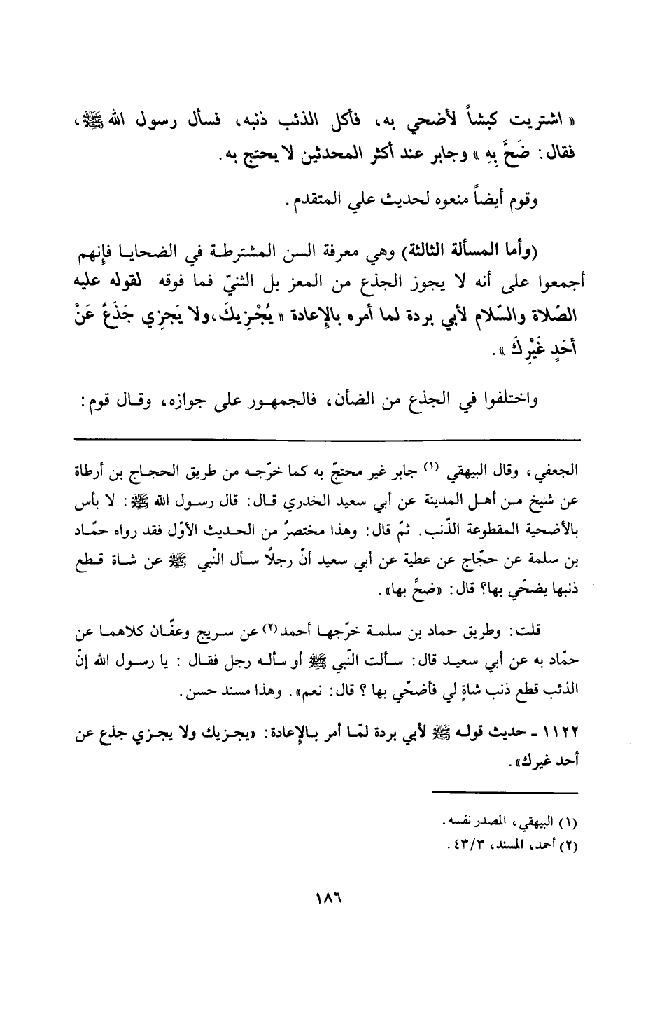 1122 - حديث قوله - صلى الله عليه وسلم - لأبي بردة لمّا أمر بالإِعادة: "يجزيك ولا يجزي جذع عن أحد غيرك".