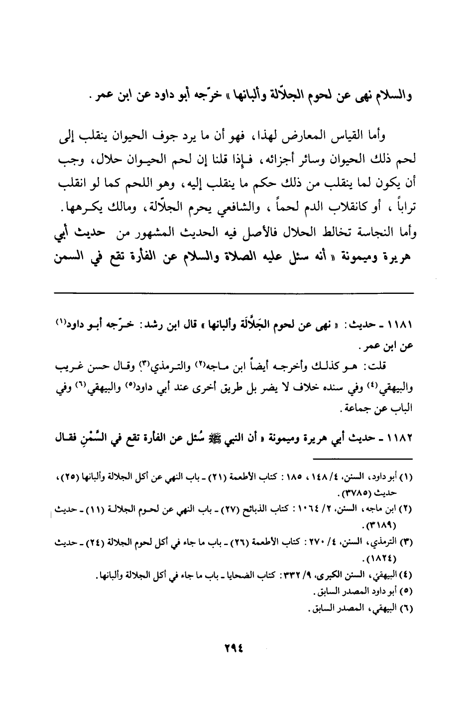 1181 - حديث: "نهى عن لحوم الجَلَّالَة وألبانها" قال ابن رشد: خرّجه أبو داود عن ابن عمر.