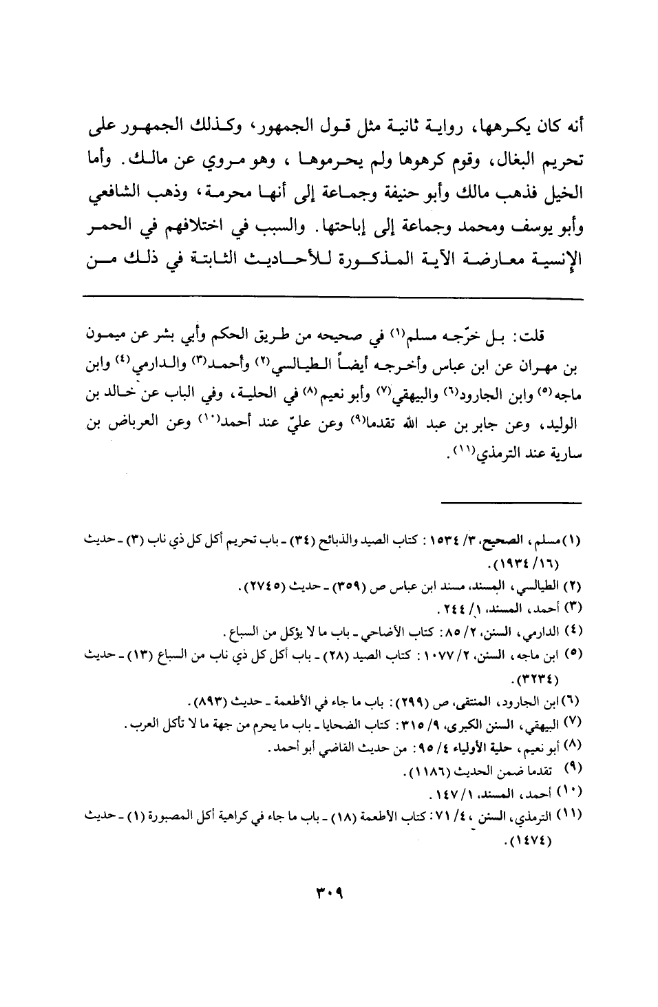 قلت: بل خرّجه مسلم في صحيحه من طريق الحكم وأبي بشر عن ميمون بن مهران عن ابن عباس وأخرجه أيضًا الطيالسي وأحمد والدارمي وابن ماجه وابن الجارود والبيهقي وأبو نعيم في الحلية، وفي الباب عن خالد بن الوليد، وعن جابر بن عبد الله تقدما وعن عليّ عند أحمد وعن العرباض بن سارية عند الترمذي.