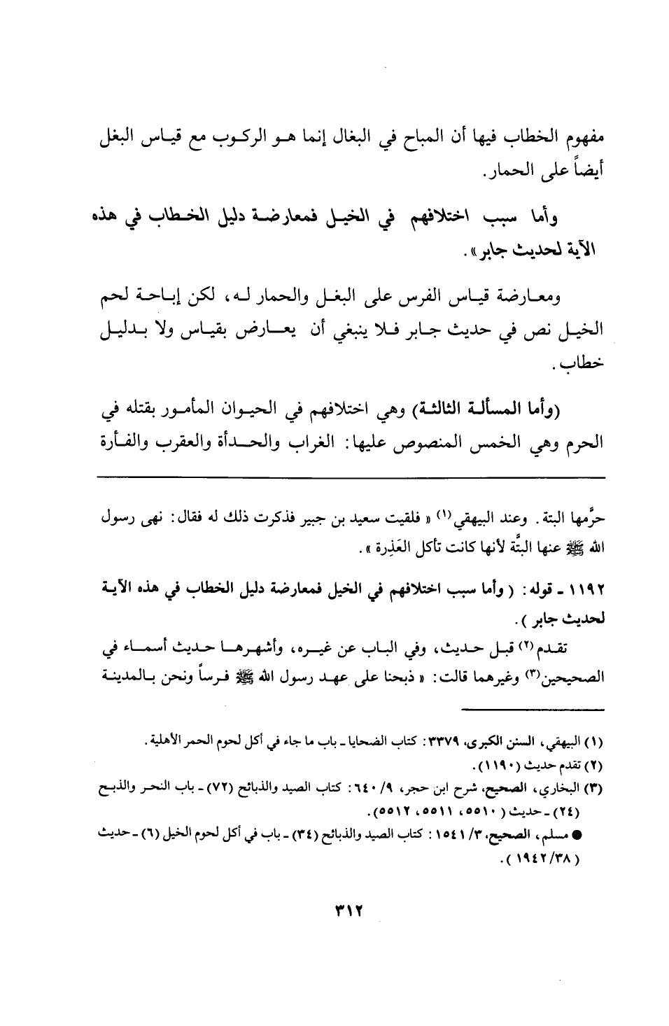 1192 - قوله: (وأما سبب اختلافهم في الخيل فمعارضة دليل الخطاب في هذه الآية لحديث جابر).