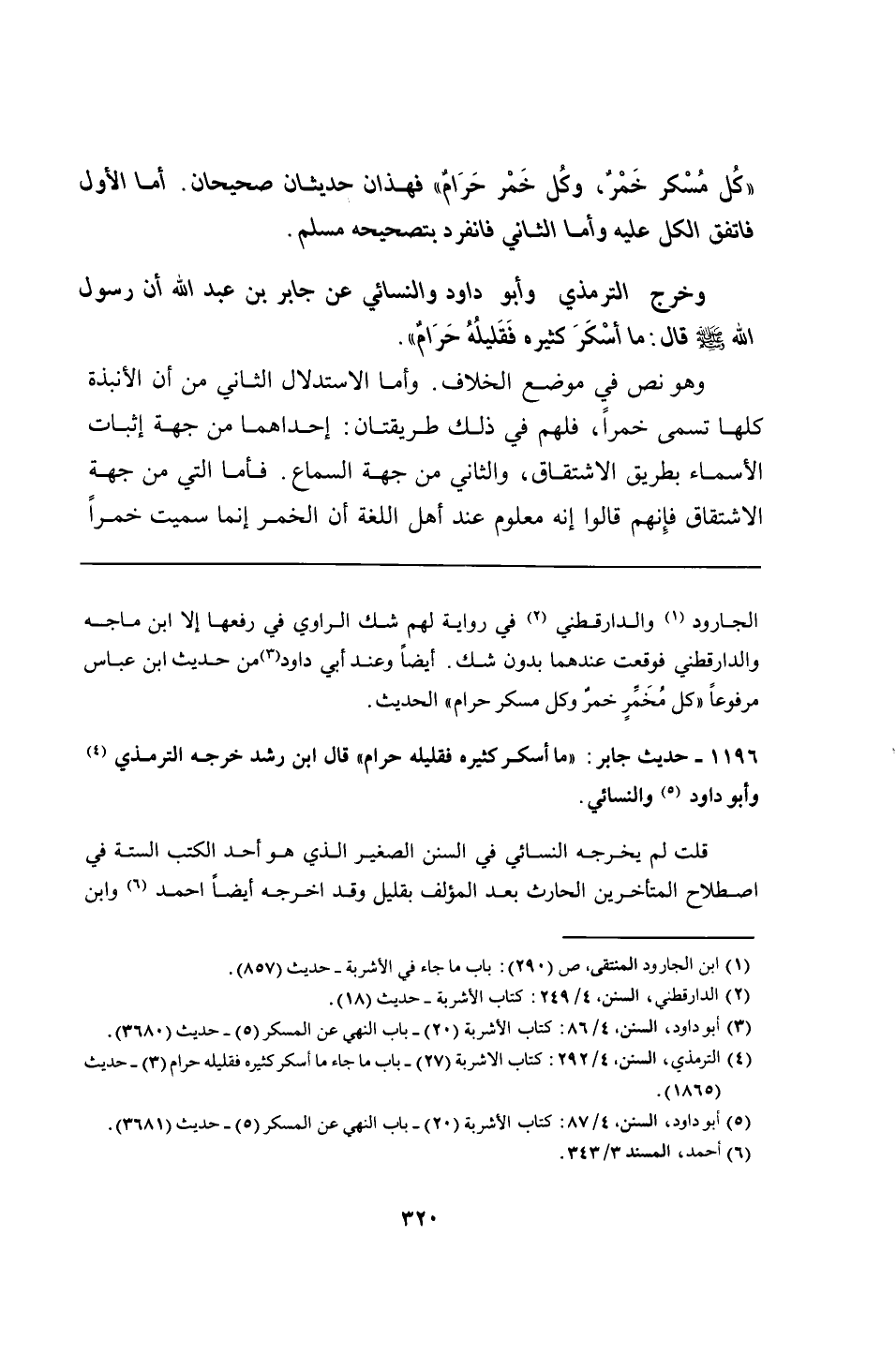 1196 - حديث جابر: "ما أسكر كثيره فقليله حرام" قال ابن رشد خرجه الترمذي وأبو داود والنسائي.