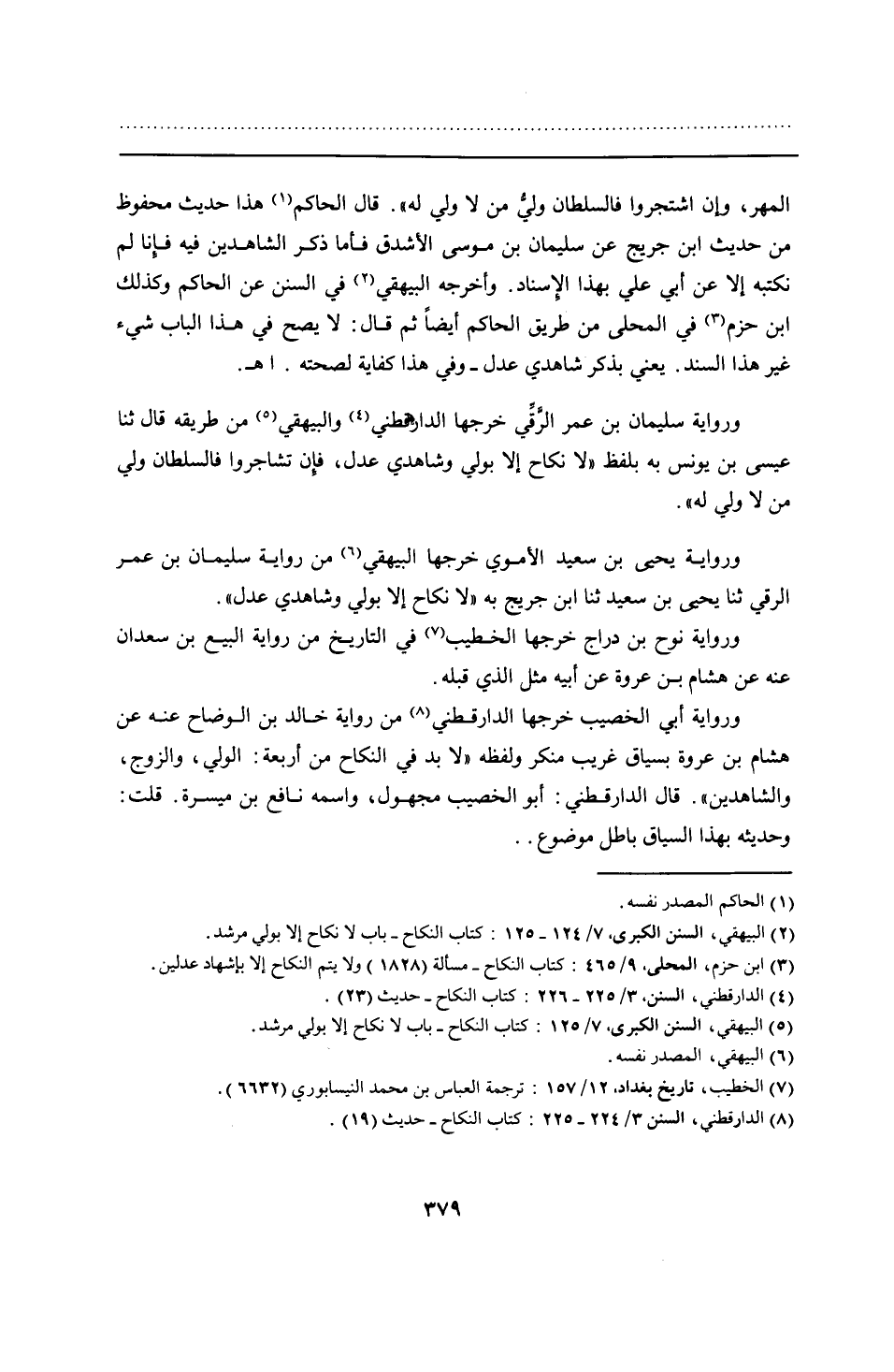 ورواية أبي الخصيب خرجها الدارقطني من رواية خالد بن الوضاح عنه عن هشام بن عروة بسياق غريب منكر ولفظه "لابد في النكاح من أربعة: الولي، والزوج، والشاهدين". قال الدارقطني: أبو الخصيب مجهول، واسمه نافع بن ميسرة. قلت: وحديثه بهذا السياق باطل موضوع ..