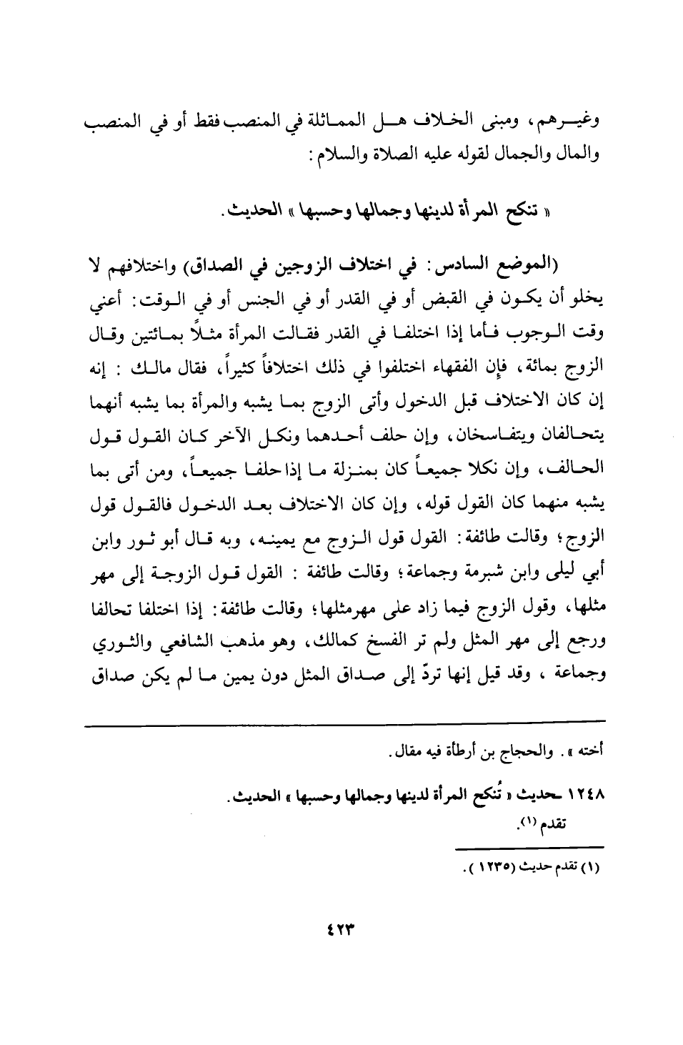 1248 - حديث "تُنكح المرأة لدينها وجمالها وحسبها" الحديث.