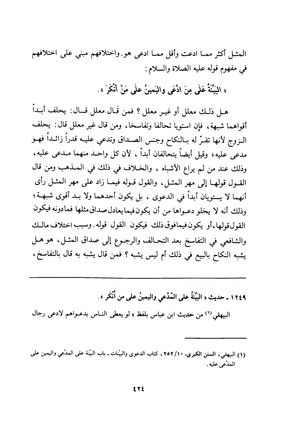 1249 - حديث "البَيِّنَةُ على المُدَّعي واليمينُ على من أنْكَر".