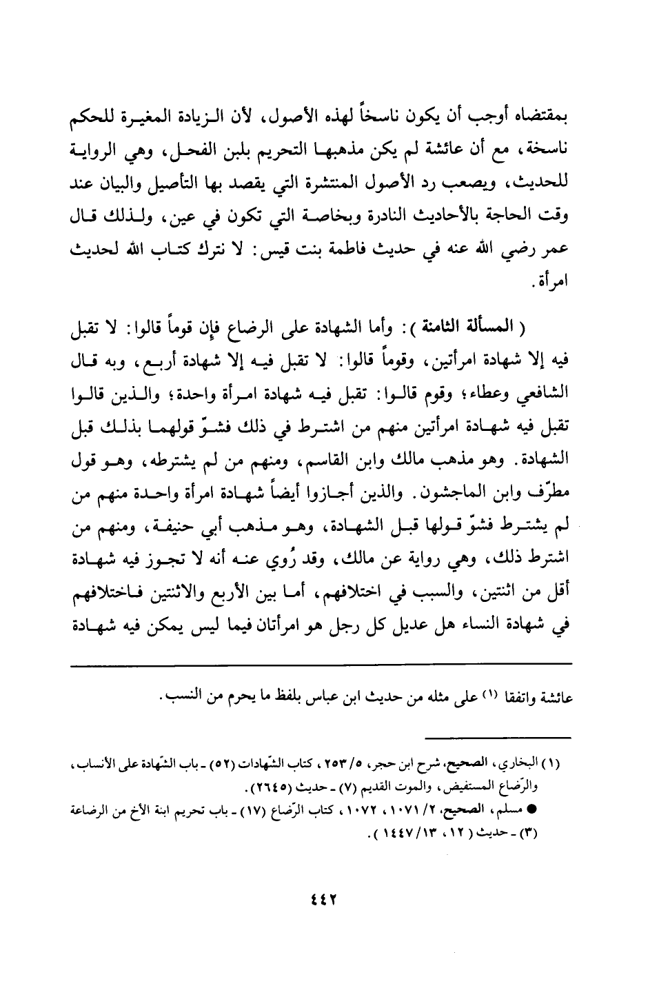 عائشة واتفقا على مثله من حديث ابن عباس بلفظ ما يحرم من النسب.