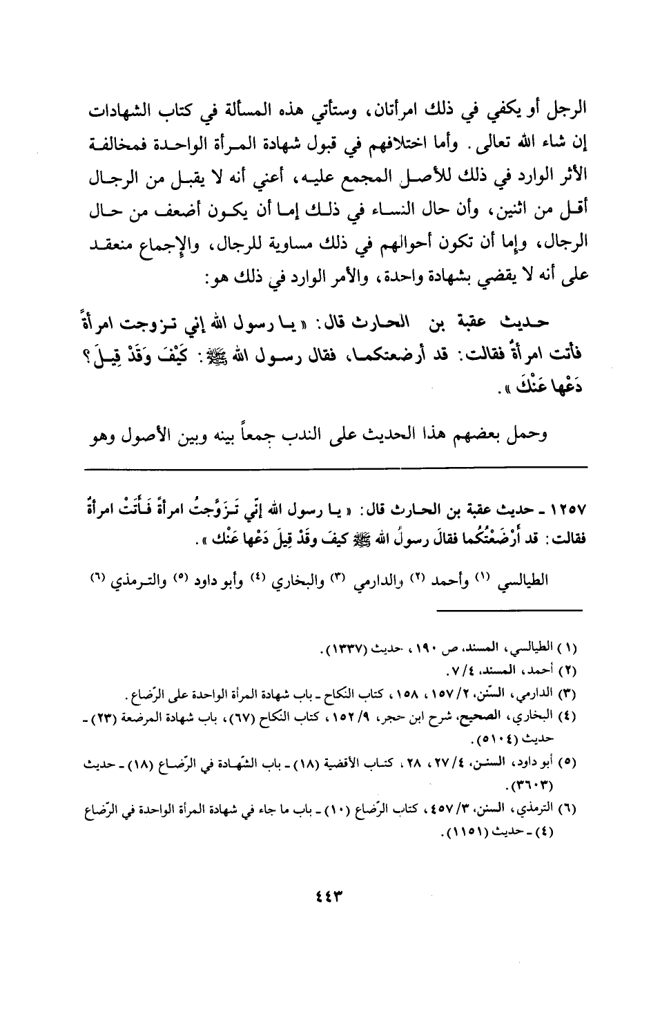 1257 - حديث عقبة بن الحارث قال: "يا رسول الله إنّي تَزَوَّجتُ امرأةً فَأتَتْ امرأةٌ فقالت: قد أرْضَعْتُكُما فقالَ رسولُ الله - صلى الله عليه وسلم - كيفَ وقَدْ قِيلَ دَعْها عَنْك".