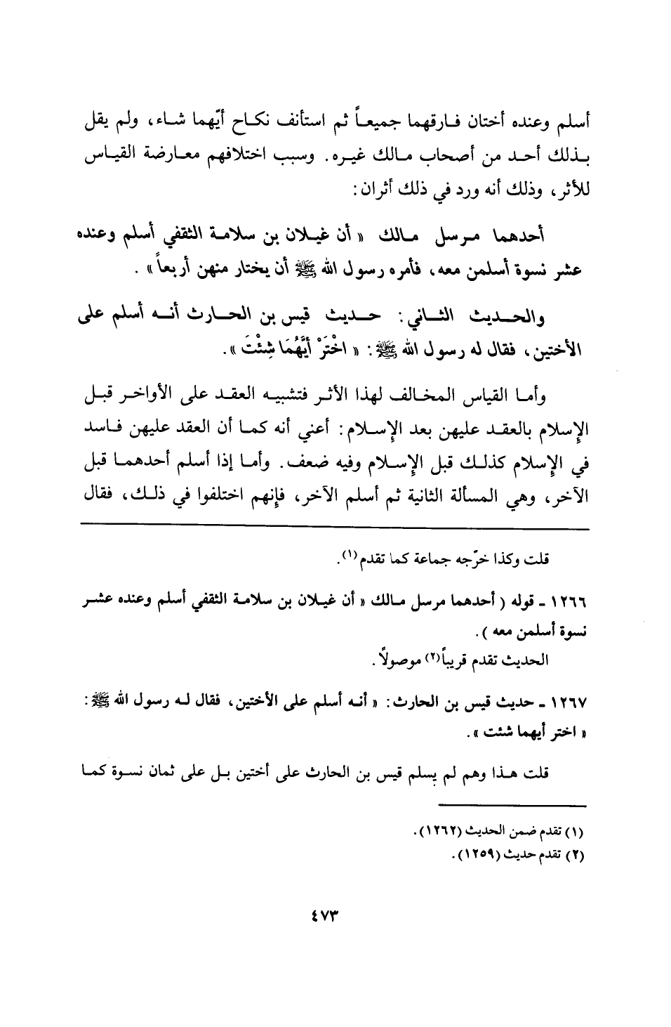 1267 - حديث قيس بن الحارث: "أنه أسلم على الأختين، فقال له رسول الله - صلى الله عليه وسلم -: "اختر أيهما شئت".