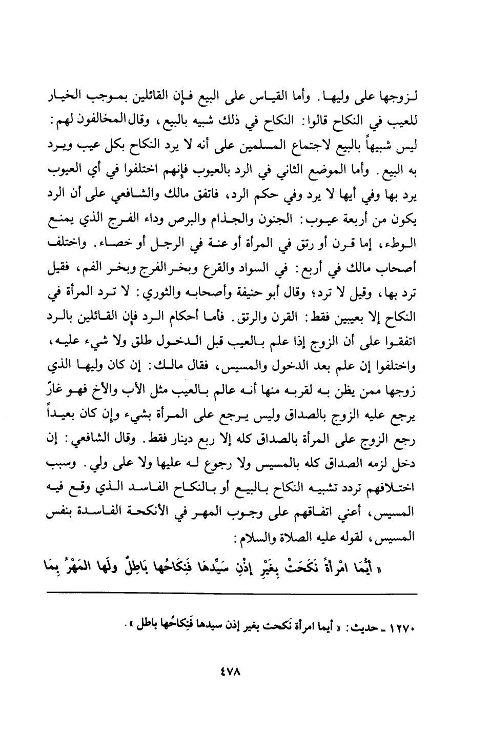 1270 - حديث: "أيما امرأة نَكحت بغير إذن سيدها فَنِكاحُها باطل".