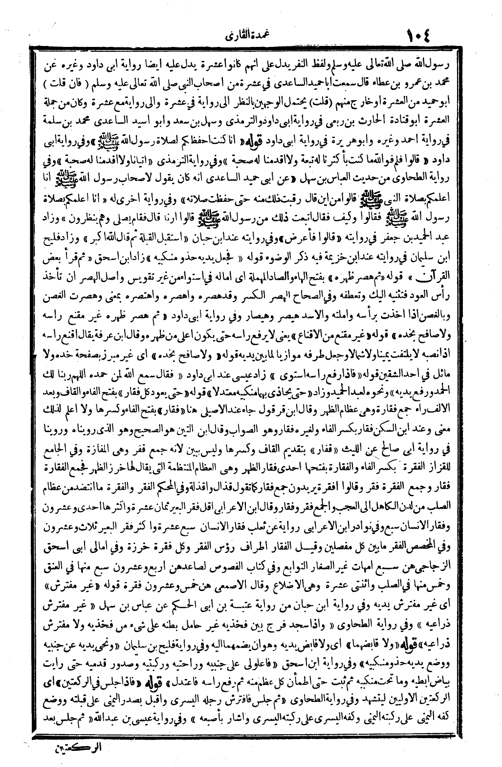 رَسُول الله، صلى الله عَلَيْهِ وَسلم، وَلَفظ: النَّفر، يدل على أَنهم كَانُوا عشرَة، يدل عَلَيْهِ أَيْضا رِوَايَة أبي دَاوُد وَغَيره: عَن مُحَمَّد بن عَمْرو بن عَطاء، قَالَ: سَمِعت أَبَا حميد السَّاعِدِيّ فِي عشرَة من أَصْحَاب النَّبِي، صلى الله عَلَيْهِ وَسلم. فَإِن قلت: أَبُو حميد من الْعشْرَة أَو خَارج مِنْهُم؟ قلت: يحْتَمل الْوَجْهَيْنِ بِالنّظرِ إِلَى رِوَايَة: فِي عشرَة، وَإِلَى رِوَايَة: مَعَ عشرَة، وَكَانَ من جملَة الْعشْرَة: أَبُو قَتَادَة الْحَارِث بن ربعي فِي رِوَايَة أبي دَاوُد وَالتِّرْمِذِيّ، وَسَهل بن سعد وَأَبُو أسيد السَّاعِدِيّ مُحَمَّد بن سَلمَة فِي رِوَايَة أَحْمد وَغَيره، وَأَبُو هُرَيْرَة فِي رِوَايَة أبي دَاوُد. قَوْله: (أَنا كنت أحفظكم لصَلَاة رَسُول الله صلى الله عَلَيْهِ وَسلم) ، وَفِي رِوَايَة أبي دَاوُد: (قَالُوا: فَلِمَ؟ فوَاللَّه مَا كنت بأكثرنا لَهُ تبعة وَلَا أقدمنا لَهُ صُحْبَة) . وَفِي رِوَايَة التِّرْمِذِيّ: (إتيانا، وَلَا أقدمنا لَهُ صُحْبَة) . وَفِي رِوَايَة الطَّحَاوِيّ من حَدِيث الْعَبَّاس بن سهل: (عَن أبي حميد السَّاعِدِيّ أَنه كَانَ يَقُول لأَصْحَاب رَسُول الله صلى الله عَلَيْهِ وَسلم: أَنا أعلمكُم بِصَلَاة النَّبِي صلى الله عَلَيْهِ وَسلم. قَالُوا: من أَيْن؟ قَالَ: رقبت ذَلِك مِنْهُ حَتَّى حفظت صلَاته) . وَفِي رِوَايَة أُخْرَى لَهُ: (أَنا أعلمكُم بِصَلَاة رَسُول الله صلى الله عَلَيْهِ وَسلم، فَقَالُوا: وَكَيف؟ فَقَالَ: اتبعت ذَلِك من رَسُول الله صلى الله عَلَيْهِ وَسلم، قَالُوا: أرنا. قَالَ: فَقَامَ يُصَلِّي وهم ينظرُونَ) . وَزَاد عبد الحميد بن جَعْفَر فِي رِوَايَته: (قَالُوا: فَأَعْرض) ، وَفِي رِوَايَته عِنْد ابْن حبَان: (اسْتقْبل الْقبْلَة ثمَّ قَالَ: الله أكبر) . وَزَاد فليح ابْن سُلَيْمَان فِي رِوَايَته عِنْد ابْن خُزَيْمَة فِيهِ ذكر الْوضُوء. قَوْله: (فَجعل يَدَيْهِ حَذْو مَنْكِبَيْه) زَاد ابْن إِسْحَاق: (ثمَّ قَرَأَ بعض الْقُرْآن) . قَوْله: (ثمَّ هصر ظَهره) ، بِفَتْح الْهَاء وَالصَّاد الْمُهْملَة أَي: أماله فِي اسْتِوَاء من غير تقويس، وأصل الهصر: أَن تَأْخُذ رَأس الْعود فتثنيه إِلَيْك وتعطفه. وَفِي (الصِّحَاح) : الهصر الْكسر، وَقد هصره وأهصره واهتصره بِمَعْنى، وهصرت الْغُصْن وبالغصن إِذا أخذت بِرَأْسِهِ وأملته، والأسد هيصر وهيصار، وَفِي رِوَايَة أبي دَاوُد: (ثمَّ هصره ظَهره غير مقنع رَأسه وَلَا صَافح بخده) . قَوْله: (غيرمقنع) من الْإِقْنَاع يَعْنِي: لَا يرفع رَأسه حَتَّى يكون أَعلَى من ظَهره، وَقَالَ ابْن عَرَفَة: يُقَال: أقنع رَأسه إِذا نَصبه لَا يلْتَفت يَمِينا وَلَا شمالاً، وَجعل طرفه موازيا لما بَين يَدَيْهِ. قَوْله: (وَلَا صَافح بخده) أَي: غير مبرز بصفحة خَدّه وَلَا مائل فِي أحد الشقين. قَوْله: (فَإِذا رفع رَأسه اسْتَوَى) زَاد عِيسَى عِنْد أبي دَاوُد (فَقَالَ: سمع الله لمن حَمده اللَّهُمَّ رَبنَا لَك الْحَمد، وَرفع يَدَيْهِ) . وَنَحْوه لعبد الحميد وَزَاد: (حَتَّى يُحَاذِي بهما مَنْكِبَيْه معتدلاً) . قَوْله: (حَتَّى يعود كل فقار) بِفَتْح الْفَاء وَالْقَاف وَبعد الْألف رَاء جمع: فقارة، وَهِي عِظَام الظّهْر. وَقَالَ ابْن قرقول: جَاءَ عِنْد الْأصيلِيّ هُنَا: (فقار) ، بِفَتْح الْفَاء وَكسرهَا، وَلَا أعلم لذَلِك معنى، وَعند ابْن السكن: فقار، بِكَسْر الْفَاء، وَلغيره: فقار، وَهُوَ الصَّوَاب. وَقَالَ ابْن التِّين: هُوَ الصَّحِيح، وَهُوَ الَّذِي روينَاهُ، وروينا فِي رِوَايَة أبي صَالح عَن اللَّيْث: (قفار) ، بِتَقْدِيم الْقَاف وَكسرهَا، وَلَيْسَ، لِأَنَّهُ جمع: قفر، وَهِي: الْمَفَازَة. وَفِي (الْجَامِع) للقزاز: الْفَقْرَة، بِكَسْر الْفَاء، والفقارة بِفَتْحِهَا: إِحْدَى فقار الظّهْر، وَهِي الْعِظَام المنتظمة الَّتِي يُقَال لَهَا: خرز الظّهْر، فَجمع الفقارة فقار، وَجمع الْفَقْرَة: فقر، وَقَالُوا: أفقرة