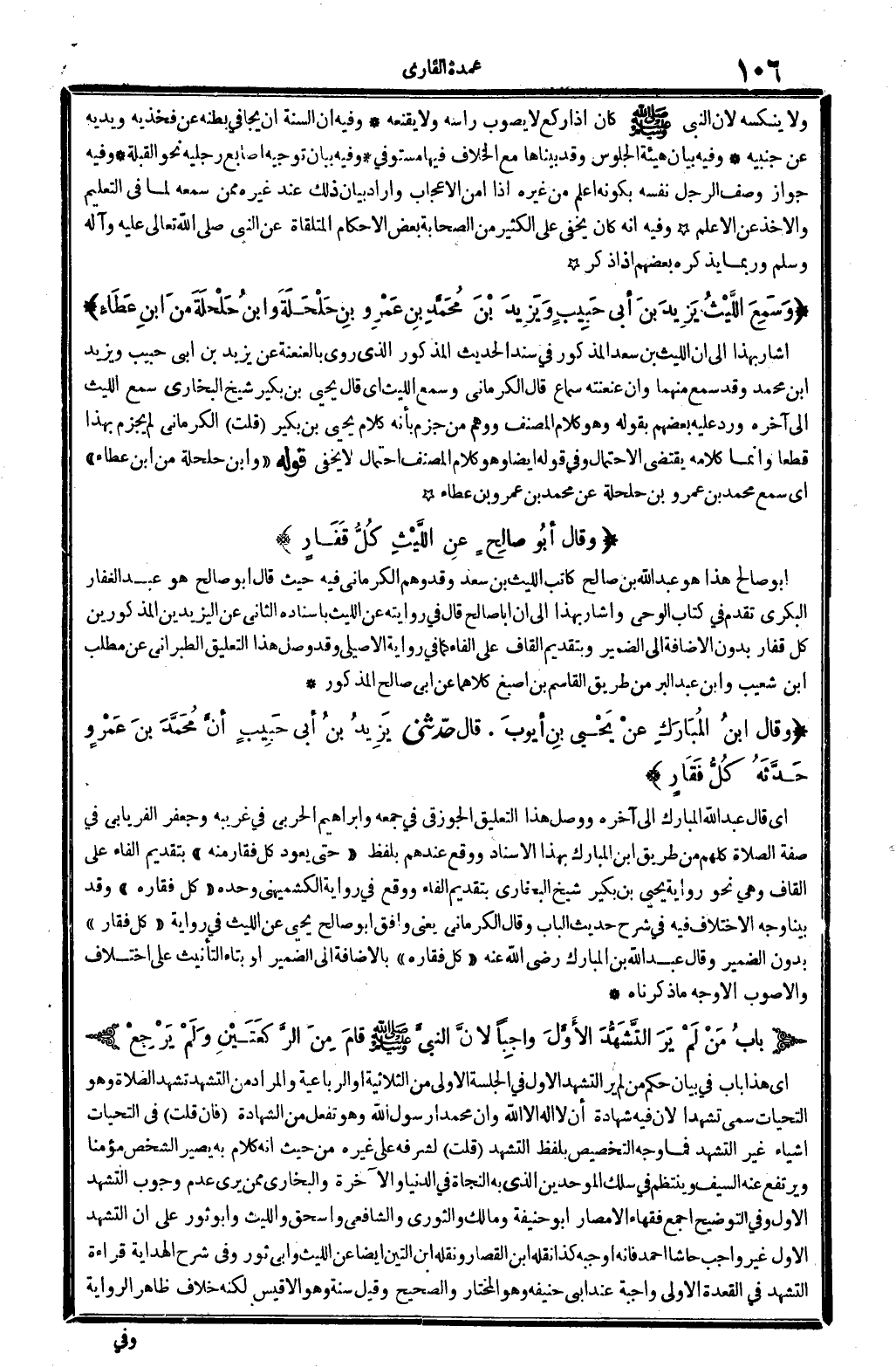 وَقَالَ ابنُ المبارَكُ عنْ يَحْيَى بنِ أيُّوبَ. قَالَ حدَّثني يَزِيدُ بنُ أبي حَبِيبٍ أنَّ محَمَّذَ بنَ عَمْرٍ وحدَّثَهُ كُلُّ فَقَارٍ