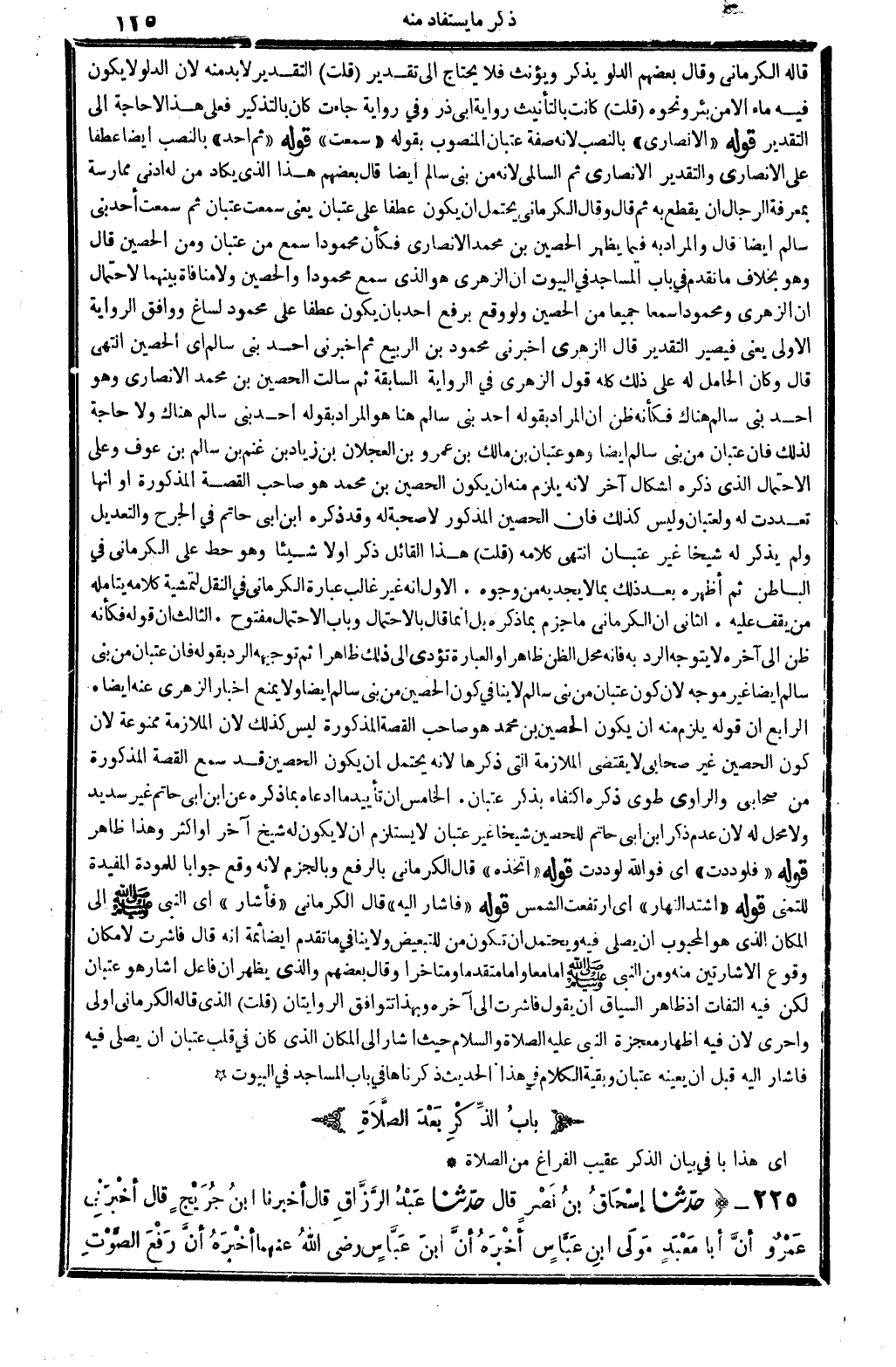 قلت: هَذَا الْقَائِل ذكر أَولا شَيْئا، وَهُوَ حط على الْكرْمَانِي فِي الْبَاطِن، ثمَّ أظهره بعد ذَلِك بِمَا لَا يجديه من وُجُوه: الأول: أَنه غيَّر غَالب عبارَة الْكرْمَانِي فِي النَّقْل لتمشية كَلَامه، يتأمله من يقف عَلَيْهِ. الثَّانِي: أَن الْكرْمَانِي مَا جزم بِمَا ذكره، بل إِنَّمَا قَالَ بِالِاحْتِمَالِ، وَبَاب الِاحْتِمَال مَفْتُوح،. الثَّالِث: أَن قَوْله: فَكَأَنَّهُ ظن. . إِلَى آخِره، لَا يتَوَجَّه الرَّد بِهِ، فَإِنَّهُ مَحل الظَّن ظَاهر، أَو الْعبارَة تُؤدِّي إِلَى ذَلِك ظَاهرا، ثمَّ تَوْجِيهه الرَّد بقوله: فَإِن عتْبَان من بني سَالم أَيْضا غير موجه، لِأَن كَون عتْبَان من بني سَالم لَا يُنَافِي كَون الْحصين من بني سَالم أَيْضا، وَلَا يمْنَع إِخْبَار الزُّهْرِيّ عَنهُ أَيْضا. الرَّابِع: أَن قَوْله يلْزم مِنْهُ أَن يكون الْحصين بن مُحَمَّد هُوَ صَاحب الْقِصَّة الْمَذْكُورَة لَيْسَ كَذَلِك، لِأَن الْمُلَازمَة مَمْنُوعَة، لِأَن كَون الْحصين غير صَحَابِيّ لَا يَقْتَضِي الْمُلَازمَة الَّتِي ذكرهَا، لِأَنَّهُ يحْتَمل أَن يكون الْحصين قد سمع الْقِصَّة الْمَذْكُورَة من صَحَابِيّ، والراوي طوى ذكره اكْتِفَاء بِذكر عتْبَان. الْخَامِس: أَن تأييد مَا أدعاه بِمَا ذكره عَن ابْن أبي حَاتِم غير سديد وَلَا مَحل لَهُ، لِأَن عدم ذكر ابْن أبي حَاتِم للحصين شَيخا غير عتْبَان لَا يسْتَلْزم أَن لَا يكون لَهُ شيخ آخر أَو أَكثر، وَهَذَا ظَاهر.