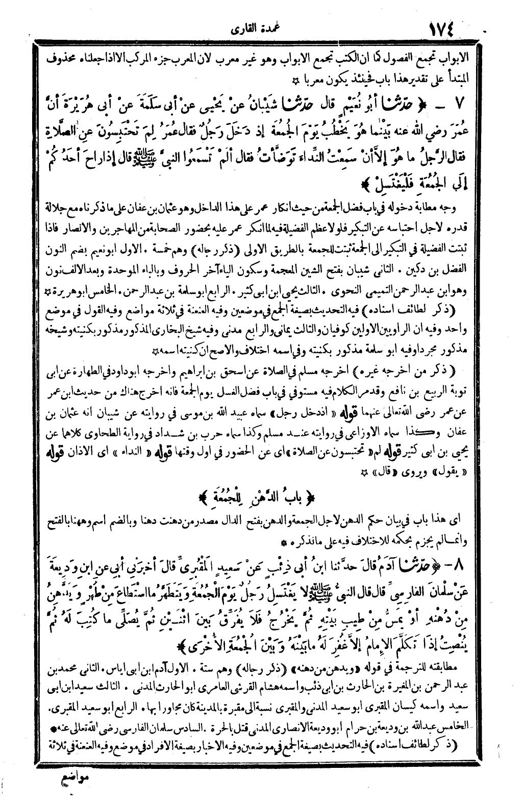 882 - حدَّثنا أبُو نُعَيْمٍ قَالَ حدَّثنا شَيْبَانُ عنْ يَحْيى عنْ أبِي سَلَمَةَ عنْ أبِي هُرَيْرَةَ أنَّ عُمَرَ رَضِي الله تَعَالَى عَنهُ بَيْنَمَا هُوَ يَخْطُبُ يَوْمَ الجُمُعَة إِذْ دَخَلَ رَجُلٌ فَقَالَ عُمَرُ لِمَ تَحْتَبِسُونَ عنِ الصَّلاَةِ فَقَالَ الرَّجُلُ مَا هُوَ إلاّ أنْ سَمِعْتُ النِّدَاءَ تَوَضَّأتُ فَقَالَ ألَمْ تَسْمعوا النبيَّ صلى الله عَلَيْهِ وَسلم قَالَ إذَا راحَ أحدُكُمْ إِلَى الجُمُعَةِ فَلْيَغْتَسِلْ. (انْظُر الحَدِيث 878) .