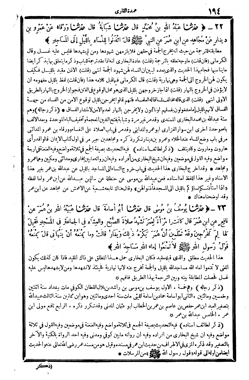 ذكر لطائف إِسْنَاده: وَفِيه: التحديث بِصِيغَة الْجمع فِي ثَلَاثَة مَوَاضِع. وَفِيه: العنعنة فِي موضِعين. وَفِيه: القَوْل فِي ثَلَاثَة مَوَاضِع. وَفِيه: أَن شيخ البُخَارِيّ من أَفْرَاده وَفِيه: أَن رُوَاته مَا بَين كُوفِي ومدني. وَفِيه: أحد الروَاة بالكنية وَالْآخر بِالتَّصْغِيرِ، وَقد ذكره الْمزي فِي (الْأَطْرَاف) من حَدِيث ابْن عمر فِي مُسْنده، وَقيل: هُوَ من مُسْند عمر، رَضِي الله تَعَالَى عَنهُ، والْحَدِيث أَيْضا من أَوله إِلَى قَوْله: (قَول رَسُول الله صلى الله عَلَيْهِ وَسلم) من المرسلات.