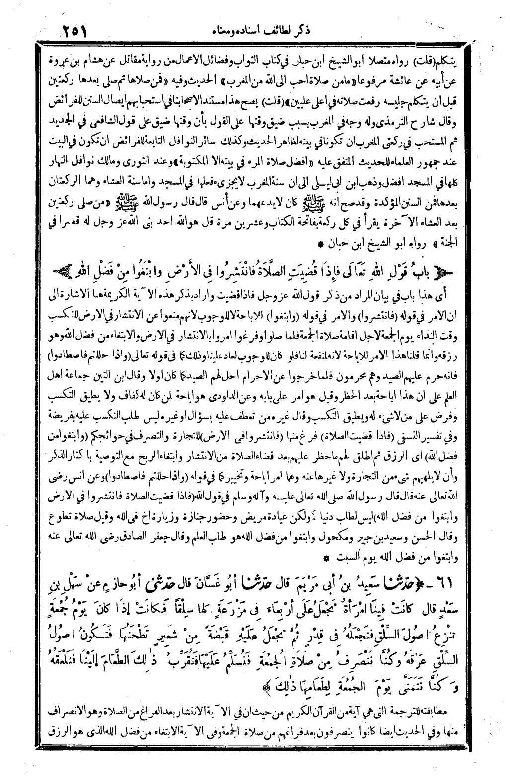 40 - (باُ قَوْلِ الله تعالَى فإذَا قُضِيَتِ الصَّلاَةُ فانْتَشِرُوا فِي الأرْضِ وابْتَغُوا مِنْ فَضْلِ الله)
