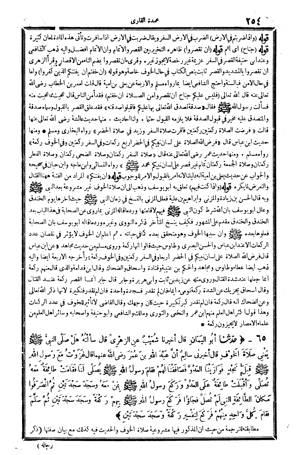 942 - حدَّثنا أبُو اليَمَانِ قَالَ أخبرنَا شُعَيْبٌ عنِ الزُّهْرِيِّ قَالَ سألْتُهُ هَلْ صَلَّى النبيُّ صلى الله عَلَيْهِ وَسلم يَعْنِي صلاَةَ الخَوْفِ قَالَ أَخْبرنِي سالِمٌ أنَّ عَبْدَ الله بنَ عُمَرَ رَضِي الله تَعَالَى عَنْهُمَا قَالَ غَزَوْتُ مَعَ رسولِ الله صلى الله عَلَيْهِ وَسلم قِبَلَ نَجْدٍ فَوَازَيْنَا العَدُوَّ فصَافَفْنَا لَهُمْ فقامَ رسولُ الله صلى الله عَلَيْهِ وَسلم يُصَلِّي لَنَا فقَامَتْ طائِفَةٌ مَعهُ تُصَلِّي وَأقْبَلَتْ طائِفَةٌ عَلَى العَدُوِّ ورَكَعَ رسولْ الله صلى الله عَلَيْهِ وَسلم بِمَنْ مَعَهُ وسَجَدَ سَجْدَتَيْنِ ثُمَّ انْصَرَفُوا مَكانَ الطَّائِفَةِ الَّتِي لَمْ تُصَلِّ فجَاؤُا فرَكَعَ رسولُ الله صلى الله عَلَيْهِ وَسلم بِهِمْ رَكْعَةً وسَجَدَ سَجْدَتَيْنِ ثُمَّ سَلَّمَ فقامَ كُلُّ وَاحِدٍ مِنْهُمْ فرَكَعَ لِنَفْسِهِ رَكْعَةً وسَجدَ سَجْدتَيْنِ. .