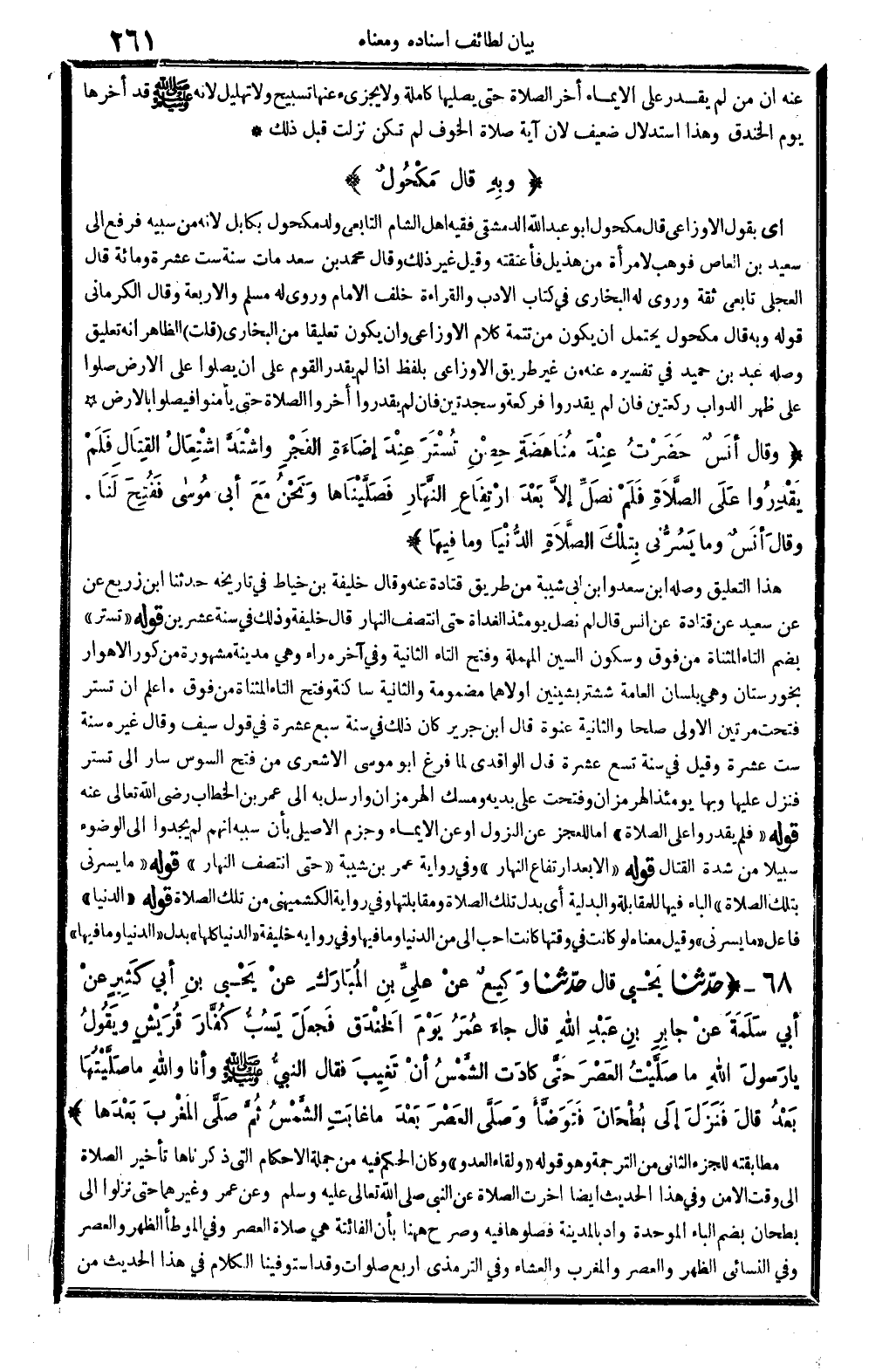 945 - حدَّثنا يَحْيَى قَالَ حدَّثنا وَكِيعٌ عنْ عَلِيِّ بنِ المُبَارَكِ عنْ يَحْيَى بنِ أبِي كَثِيرٍ عنْ أبِي سَلَمَةَ عنْ جابِرِ بنِ عَبْدِ الله قَالَ جاءَ عُمَرُ يَوْمَ الخَنْدَقِ فجَعَلَ يَسُبُّ كُفَّارَ قُرَيْشٍ ويَقُولُ يَا رسُولَ الله مَا صَلَّيْتُ العَصْرَ حَتَّى كادَت الشَّمْسُ أنْ تَغِيبَ فَقَالَ النبيُّ صلى الله عَلَيْهِ وَسلم وَأَنا وَالله مَا صَلَّيْتُهَا بَعْدُ قالَ فنَزَلَ إِلَى بُطْحَانَ فَتوَضَّأَ وصَلَّى العَصْرَ بَعْدما غَابَتِ الشَّمْسُ ثُمَّ صَلَّى المغْرِبَ بَعْدَهَا. .