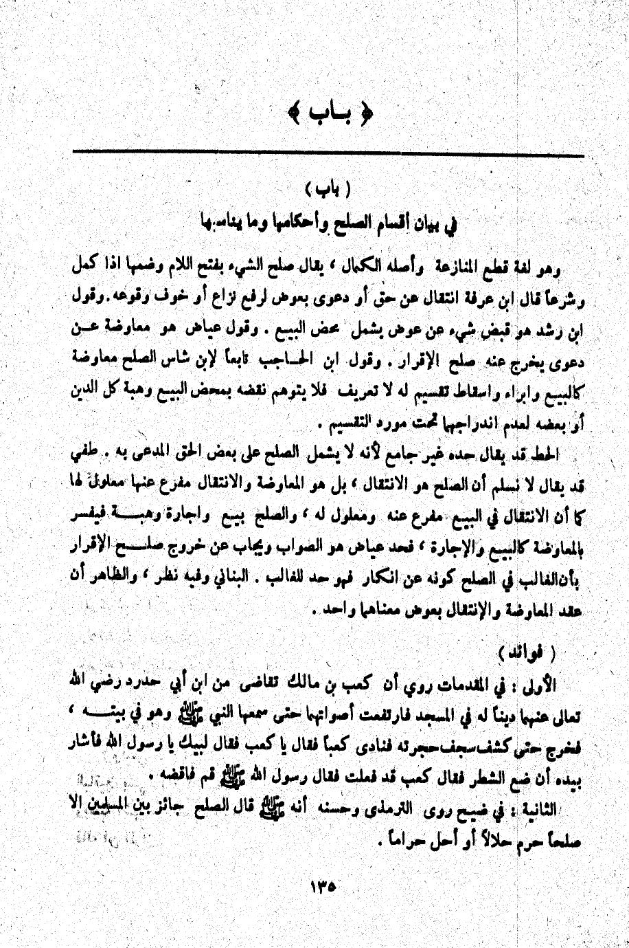 بَابٌ) فِي بَيَانِ أَقْسَامِ الصُّلْحِ وَأَحْكَامِهَا وَمَا يُنَاسِبُهَا