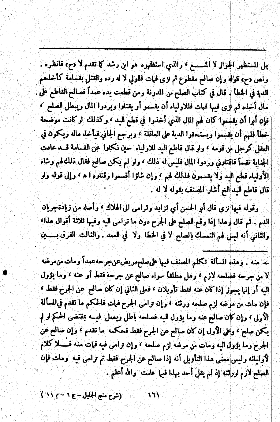 ـــــــــــــــــــــــــــــQبَلْ الْمُسْتَظْهَرُ الْجَوَازُ لَا الْمَنْعُ، وَاَلَّذِي اسْتَظْهَرَهُ هُوَ ابْنُ رُشْدٍ كَمَا تَقَدَّمَ لَا " ح " فَانْظُرْهُ. وَنَصُّ " ح " قَوْلُهُ وَإِنْ صَالَحَ مَقْطُوعٌ ثُمَّ نُزِيَ فَمَاتَ فَلِلْوَلِيِّ لَا لَهُ رَدُّهُ وَالْقَتْلُ بِقَسَامَةٍ كَأَخْذِهِمْ الدِّيَةَ فِي الْخَطَإِ. قَالَ فِي كِتَابِ الصُّلْحِ مِنْ الْمُدَوَّنَةِ وَمَنْ قُطِعَتْ يَدُهُ عَمْدًا فَصَالَحَ الْقَاطِعَ عَلَى مَالٍ أَخَذَهُ ثُمَّ نُزِيَ فِيهَا فَمَاتَ فَلِلْأَوْلِيَاءِ أَنْ يُقْسِمُوا وَيَقْتُلُوا وَيَرُدُّوا الْمَالَ وَيَبْطُلُ الصُّلْحُ، فَإِنْ أَبَوْا أَنْ يُقْسِمُوا كَانَ لَهُمْ الْمَالُ الَّذِي أَخَذُوا فِي قَطْعِ الْيَدِ، وَكَذَلِكَ لَوْ كَانَتْ مُوضِحَةً خَطَأً فَلَهُمْ أَنْ يُقْسِمُوا وَيَسْتَحِقُّوا الدِّيَةَ عَلَى الْعَاقِلَةِ، وَيَرْجِعُ الْجَانِي فَيَأْخُذُ مَالَهُ وَيَكُونُ فِي الْعَقْلِ كَرَجُلٍ مِنْ قَوْمِهِ، وَلَوْ قَالَ قَاطِعُ الْيَدِ لِلْأَوْلِيَاءِ حِينَ نَكَلُوا عَنْ الْقَسَامَةِ قَدْ عَادَتْ الْجِنَايَةُ نَفْسًا فَاقْتُلُونِي وَرَدُّوا الْمَالَ فَلَيْسَ لَهُ ذَلِكَ، وَلَوْ لَمْ يَكُنْ صَالَحَ فَقَالَ ذَلِكَ لَهُمْ وَشَاءَ الْأَوْلِيَاءُ قَطْعَ الْيَدِ وَلَا يُقْسِمُونَ فَذَلِكَ لَهُمْ، وَإِنْ شَاءُوا أَقْسَمُوا وَقَتَلُوهُ. اهـ. وَإِلَى قَوْلِهِ وَلَوْ قَالَ قَاطِعُ الْيَدِ إلَخْ أَشَارَ الْمُصَنِّفُ بِقَوْلِهِ لَا لَهُ.