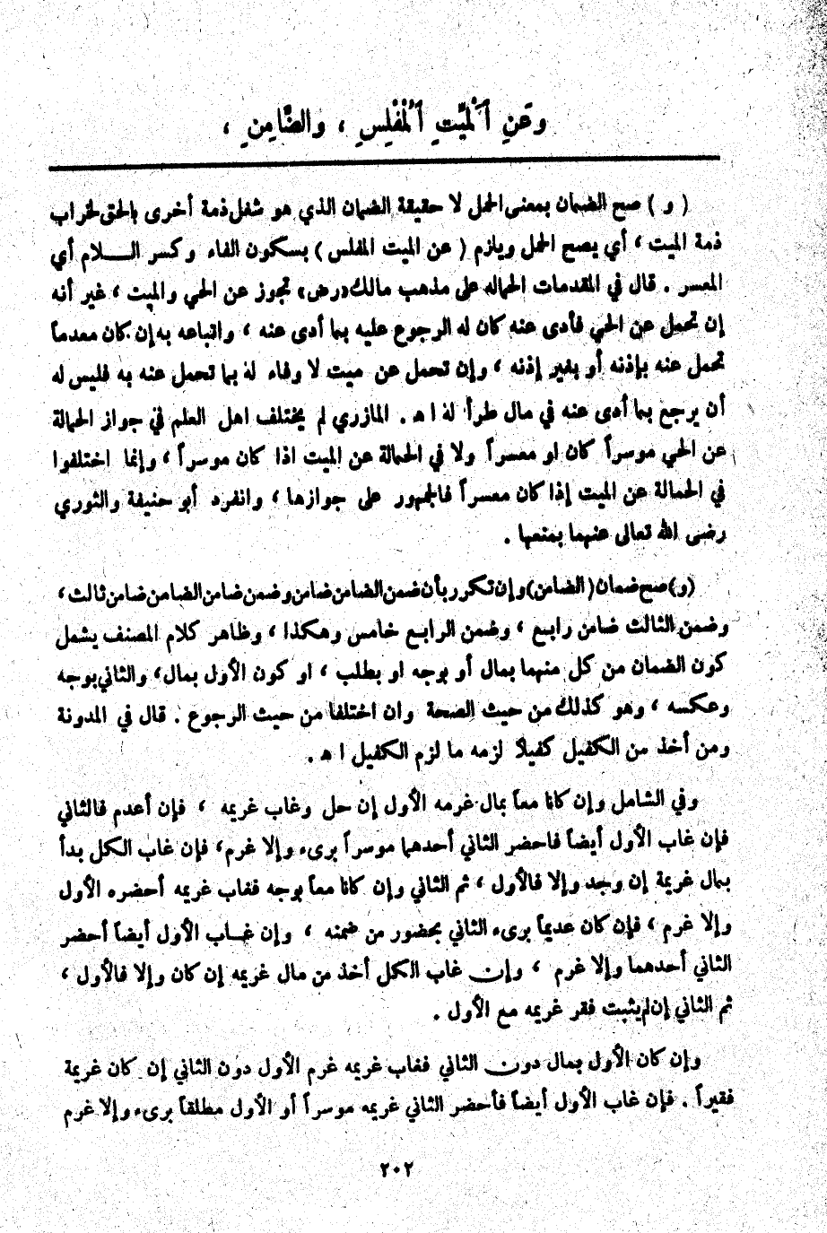 ـــــــــــــــــــــــــــــQوَ) صَحَّ الضَّمَانُ بِمَعْنَى الْحَمْلِ لَا حَقِيقَةِ الضَّمَانِ الَّذِي هُوَ شَغْلُ ذِمَّةٍ أُخْرَى بِالْحَقِّ لِخَرَابِ ذِمَّةِ الْمَيِّتِ، أَيْ صَحَّ الْحَمْلُ وَيَلْزَمُ (عَنْ الْمَيِّتِ الْمُفْلِسِ) بِسُكُونِ الْفَاءِ وَكَسْرِ اللَّامِ أَيْ الْمُعْسِرِ. قَالَ فِي الْمُقَدِّمَاتِ الْحَمَالَةُ عَلَى مَذْهَبِ مَالِكٍ - رَضِيَ اللَّهُ عَنْهُ - تَجُوزُ عَنْ الْحَيِّ وَالْمَيِّتِ، غَيْرَ أَنَّهُ إنْ تَحَمَّلَ عَنْ الْحَيِّ فَأَدَّى عَنْهُ كَانَ لَهُ الرُّجُوعُ عَلَيْهِ بِمَا أَدَّى عَنْهُ، وَإِتْبَاعُهُ بِهِ إنْ كَانَ مُعْدَمًا تَحَمَّلَ عَنْهُ بِإِذْنِهِ أَوْ بِغَيْرِ إذْنِهِ، وَإِنْ تَحَمَّلَ عَنْ مَيِّتٍ لَا وَفَاءَ لَهُ بِمَا تَحَمَّلَ عَنْهُ بِهِ فَلَيْسَ لَهُ أَنْ يَرْجِعَ بِمَا أَدَّى عَنْهُ فِي مَالٍ طَرَأَ لَهُ اهـ. الْمَازِرِيُّ لَمْ يَخْتَلِفْ أَهْلُ الْعِلْمِ فِي جَوَازِ الْحَمَالَةِ عَنْ الْحَيِّ مُوسِرًا كَانَ أَوْ مُعْسِرًا وَلَا فِي الْحَمَالَةِ عَنْ الْمَيِّتِ إذَا كَانَ مُوسِرًا، وَإِنَّمَا اخْتَلَفُوا فِي الْحَمَالَةِ عَنْ الْمَيِّتِ إذَا كَانَ مُعْسِرًا فَالْجُمْهُورُ عَلَى جَوَازِهَا، وَانْفَرَدَ أَبُو حَنِيفَةَ وَالثَّوْرِيُّ - رَضِيَ اللَّهُ تَعَالَى عَنْهُمَا - بِمَنْعِهَا