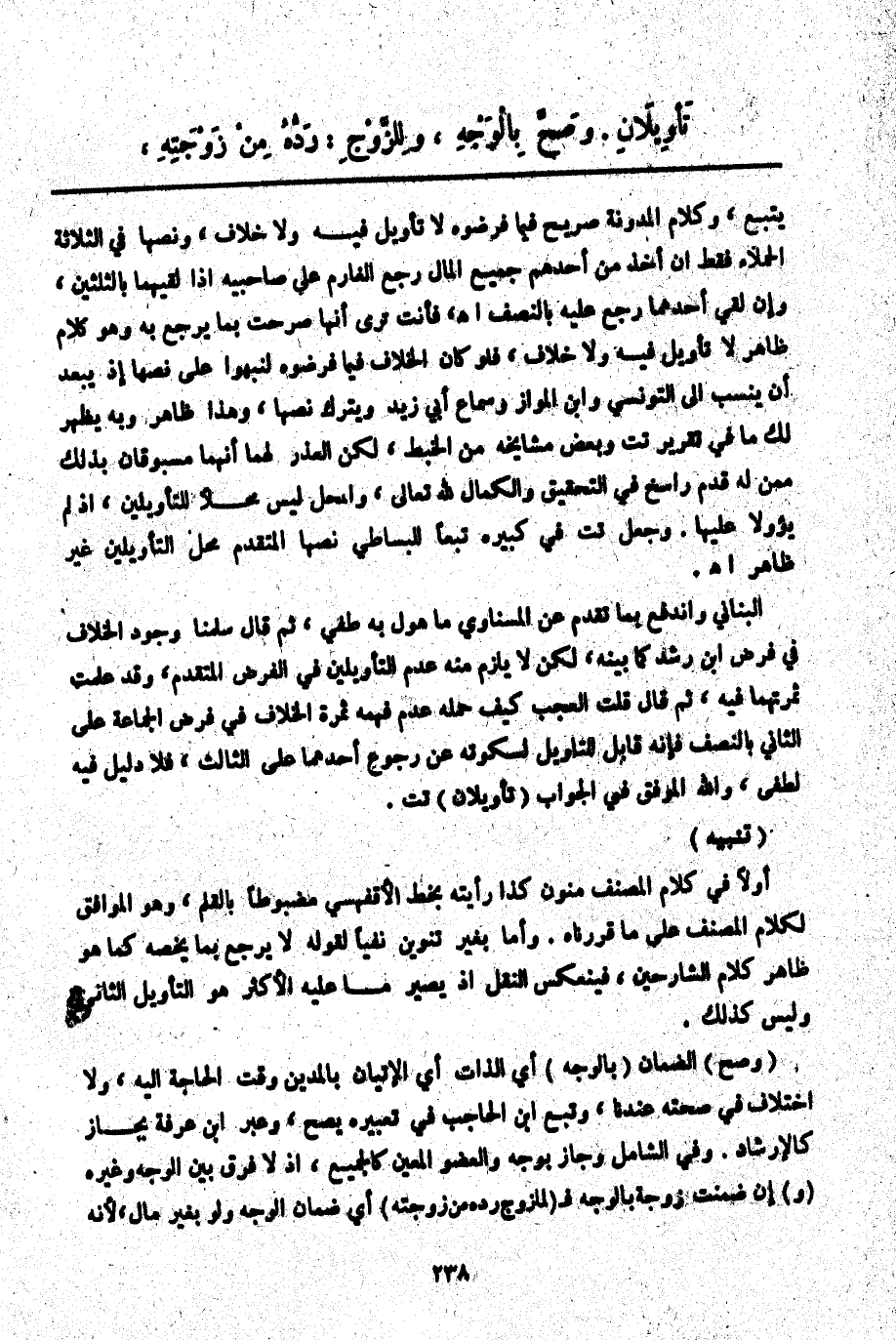 الْبُنَانِيُّ وَانْدَفَعَ بِمَا تَقَدَّمَ عَنْ الْمِسْنَاوِيِّ مَا هَوَّلَ بِهِ طفي، ثُمَّ قَالَ سَلَّمْنَا وُجُودَ الْخِلَافِ فِي فَرْضِ ابْنِ رُشْدٍ كَمَا بَيَّنَهُ، لَكِنْ لَا يَلْزَمُ مِنْهُ عَدَمُ التَّأْوِيلَيْنِ فِي الْفَرْضِ الْمُتَقَدِّمِ، وَقَدْ عَلِمْت ثَمَرَتَهُمَا فِيهِ، ثُمَّ قَالَ قُلْت الْعَجَبُ كَيْفَ حَمَلَهُ عَدَمُ فَهْمِهِ ثَمَرَةَ الْخِلَافِ فِي فَرْضِ الْجَمَاعَةِ عَلَى الثَّانِي بِالنِّصْفِ فَإِنَّهُ قَابِلٌ لِلتَّأْوِيلِ لِسُكُوتِهِ عَنْ رُجُوعِ أَحَدِهِمَا عَلَى الثَّالِثِ، فَلَا دَلِيلَ فِيهِ لطفي، وَاَللَّهُ الْمُوَفِّقُ فِي الْجَوَابِ (تَأْوِيلَانِ) تت.