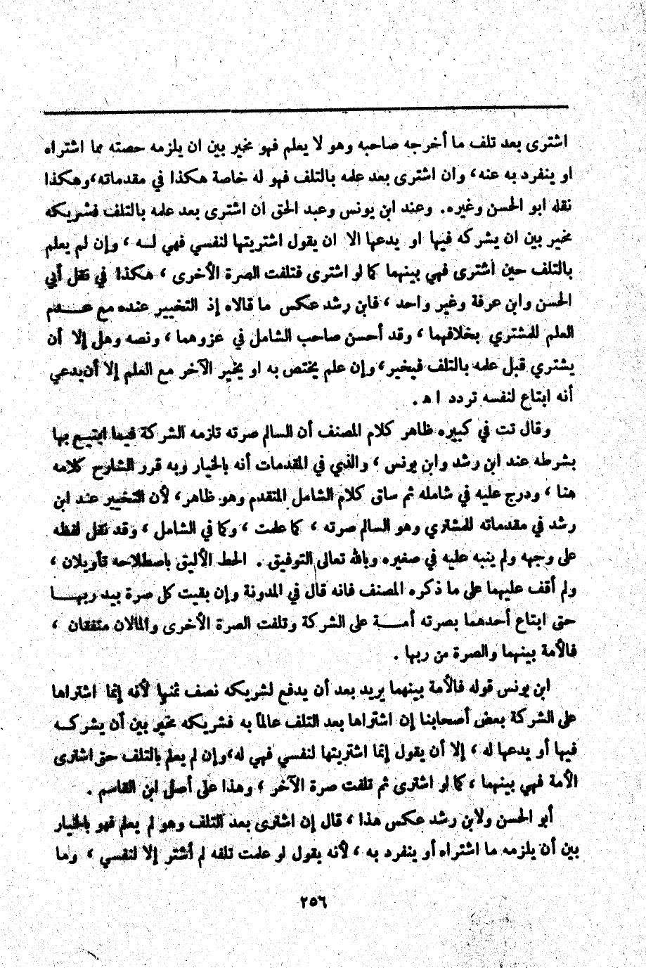 وَقَالَ تت فِي كَبِيرِهِ ظَاهِرُ كَلَامِ الْمُصَنِّفِ أَنَّ السَّالِمَ صُرَّتُهُ تَلْزَمُهُ الشَّرِكَةُ فِيمَا اُبْتِيعَ بِهَا بِشَرْطِهِ عِنْدَ ابْنِ رُشْدٍ وَابْنِ يُونُسَ، وَاَلَّذِي فِي الْمُقَدِّمَاتِ أَنَّهُ بِالْخِيَارِ وَبِهِ قَرَّرَ الشَّارِحُ كَلَامَهُ هُنَا، وَدَرَجَ عَلَيْهِ فِي شَامِلِهِ ثُمَّ سَاقَ كَلَامَ الشَّامِلِ الْمُتَقَدِّمَ وَهُوَ ظَاهِرٌ لِأَنَّ التَّخْيِيرَ عِنْدَ ابْنِ رُشْدٍ فِي مُقَدِّمَاتِهِ لِلْمُشْتَرِي وَهُوَ السَّالِمُ صُرَّتُهُ، كَمَا عَلِمْت، وَكَمَا فِي الشَّامِلِ، وَقَدْ نَقَلَ لَفْظَهُ عَلَى وَجْهِهِ وَلَمْ يُنَبِّهْ عَلَيْهِ فِي صَغِيرِهِ وَبِاَللَّهِ تَعَالَى التَّوْفِيقُ. الْحَطّ الْأَلْيَقُ بِاصْطِلَاحِهِ تَأْوِيلَانِ، وَلَمْ أَقِفْ عَلَيْهِمَا عَلَى مَا ذَكَرَهُ الْمُصَنِّفُ فَإِنَّهُ قَالَ فِي الْمُدَوَّنَةِ وَإِنْ بَقِيَتْ كُلٌّ صُرَّةٍ بِيَدِ رَبِّهَا حَتَّى ابْتَاعَ أَحَدَهُمَا بِصُرَّتِهِ أَمَةً عَلَى الشَّرِكَةِ وَتَلِفَتْ الصُّرَّةُ الْأُخْرَى وَالْمَالَانِ مُتَّفِقَانِ، فَالْأَمَةُ بَيْنَهُمَا وَالصُّرَّةُ مِنْ رَبِّهَا.