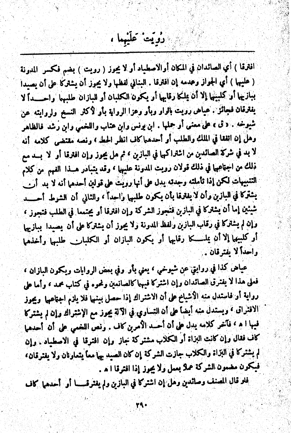 ـــــــــــــــــــــــــــــQافْتَرَقَا) أَيْ الصَّائِدَانِ فِي الْمَكَانِ أَوْ الِاصْطِيَادِ أَوْ لَا يَجُوزُ (رُوِيَتْ) بِضَمٍّ فَكَسْرٍ الْمُدَوَّنَةُ (عَلَيْهِمَا) أَيْ الْجَوَازِ وَعَدَمِهِ إنْ افْتَرَقَا. الْبُنَانِيُّ لَفْظُهَا وَلَا يَجُوزُ أَنْ يَشْتَرِكَا عَلَى أَنْ يَصِيدَا بِبَازَيْهِمَا أَوْ كَلْبَيْهِمَا إلَّا أَنْ يَمْلِكَا رِقَابَهُمَا أَوْ يَكُونَ الْكَلْبَانِ أَوْ الْبَازَانِ طَلَبُهُمَا وَاحِدًا لَا يَفْتَرِقَانِ فَجَائِزٌ. عِيَاضٌ رُوِيَتْ بِالْوَاوِ وَبِأَوْ وَعَزَا الرِّوَايَةَ بِأَوْ لِأَكْثَرِ النُّسَخِ وَلِرِوَايَتِهِ عَنْ شُيُوخِهِ. " ق " عَلَى مَعْنَى أَوْ حَمَلَهَا. ابْنُ يُونُسَ وَابْنُ عَتَّابٍ وَاللَّخْمِيُّ وَابْنُ رُشْدٍ فَالظَّاهِرُ وَهَلْ إنْ اتَّفَقَا فِي الْمِلْكِ وَالطَّلَبِ أَوْ أَحَدُهُمَا كَافٍ اُنْظُرْ الْحَطّ، وَنَصُّهُ مُقْتَضَى كَلَامِهِ أَنَّهُ لَا بُدَّ فِي شَرِكَةِ الصَّائِدَيْنِ مِنْ اشْتِرَاكِهِمَا فِي الْبَازَيْنِ، ثُمَّ هَلْ يَجُوزُ وَإِنْ افْتَرَقَا أَوْ لَا بُدَّ مَعَ ذَلِكَ مِنْ اجْتِمَاعِهِمَا فِي ذَلِكَ قَوْلَانِ رُوِيَتْ الْمُدَوَّنَةُ عَلَيْهِمَا، وَقَدْ يَتَبَادَرُ هَذَا الْفَهْمُ مِنْ كَلَامِ التَّنْبِيهَاتِ لَكِنْ إذَا تَأَمَّلْته وَجَدْته يَدُلُّ عَلَى أَنَّهَا رُوِيَتْ عَلَى قَوْلَيْنِ: أَحَدُهُمَا أَنَّهُ لَا بُدَّ أَنْ يَشْتَرِكَا فِي الْبَازَيْنِ وَأَنْ لَا يَفْتَرِقَا بِأَنْ يَكُونَ طَلَبُهُمَا وَاحِدًا، وَالثَّانِي أَنَّ الشَّرْطَ أَحَدُ شَيْئَيْنِ إمَّا أَنْ يَشْتَرِكَا فِي الْبَازَيْنِ فَتَجُوزُ الشَّرِكَةُ وَإِنْ افْتَرَقَا أَوْ يَجْتَمِعَا فِي الطَّلَبِ فَتَجُوزُ، وَإِنْ لَمْ يَشْتَرِكَا فِي رِقَابِ الْبَازَيْنِ وَلَفْظُ الْمُدَوَّنَةِ وَلَا يَجُوزُ أَنْ يَشْتَرِكَا عَلَى أَنْ يَصِيدَا بِبَازَيْهِمَا أَوْ كَلْبَيْهِمَا إلَّا أَنْ يَمْلِكَا رِقَابَهُمَا أَوْ يَكُونَ الْبَازَانِ أَوْ الْكَلْبَانِ طَلَبُهُمَا وَأَخْذُهُمَا وَاحِدٌ لَا يَفْتَرِقَانِ. عِيَاضٌ كَذَا فِي رِوَايَتِي عَنْ شُيُوخِي، يَعْنِي بِأَوْ وَفِي بَعْضِ الرِّوَايَاتِ وَيَكُونُ الْبَازَانِ، فَعَلَى هَذَا لَا يَفْتَرِقُ الصَّائِدَانِ وَإِنْ اشْتَرَكَا فِيهِمَا كَالصَّانِعَيْنِ وَنَحْوِهِ فِي كِتَابِ مُحَمَّدٍ، وَأَمَّا عَلَى رِوَايَةِ أَوْ فَاسْتَدَلَّ مِنْهُ الْأَشْيَاخُ عَلَى أَنَّ الِاشْتِرَاكَ إذَا حَصَلَ بَيْنَهُمَا فَلَا يَلْزَمُ اجْتِمَاعُهَا وَيَجُوزُ الْإِفْرَاقُ، وَيُسْتَدَلُّ مِنْهُ أَيْضًا عَلَى أَنَّ التَّسَاوِي فِي الْآلَةِ يَجُوزُ مَعَ الِاشْتِرَاكِ وَإِنْ لَمْ يَشْتَرِكَا فِيهَا. اهـ. فَآخِرُ كَلَامِهِ يَدُلُّ عَلَى أَنَّ أَحَدَ الْأَمْرَيْنِ كَافٍ. وَنَصَّ اللَّخْمِيُّ عَلَى أَنَّ أَحَدَهُمَا كَافٍ فَقَالَ وَإِنْ كَانَتْ الْبُزَاةُ أَوْ الْكِلَابُ مُشْتَرَكَةً جَازَ وَإِنْ افْتَرَقَا فِي الِاصْطِيَادِ. وَإِنْ لَمْ يَشْتَرِكَا فِي الْبُزَاةِ وَالْكِلَابِ جَازَتْ الشَّرِكَةُ إنْ كَانَ الصَّيْدُ بِهِمَا مَعًا يَتَعَاوَنَانِ وَلَا يَفْتَرِقَانِ، فَيَكُونُ مَضْمُونُ الشَّرِكَةِ عَمَلًا بِعَمَلٍ وَلَا يَجُوزُ إذَا افْتَرَقَا اهـ.