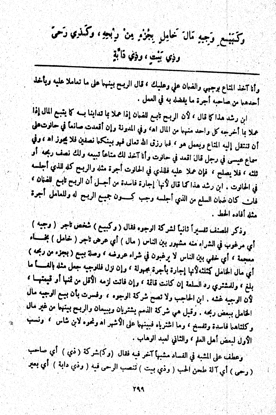 وَعَطَفَ عَلَى الْمُشَبَّهِ فِي الْفَسَادِ مُشَبَّهًا آخَرَ فِيهِ فَقَالَ (وَكَ) شَرِكَةِ (ذِي) أَيْ صَاحِبِ (رَحًى) أَيْ آلَةِ طَحْنِ الْحَبِّ (وَذِي بَيْتٍ) تُنْصَبُ الرَّحَى فِيهِ (وَذِي دَابَّةٍ) أَيْ بَعِيرٍ