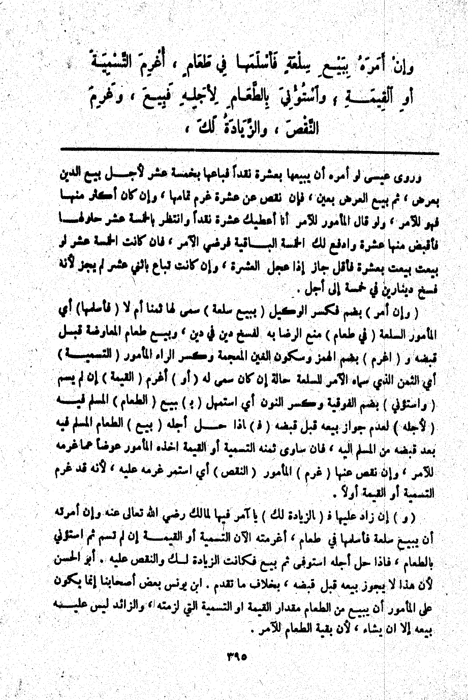 (وَ) إنْ زَادَ عَلَيْهَا فَ (الزِّيَادَةُ لَك) يَا آمِرُ فِيهَا لِمَالِكٍ - رَضِيَ اللَّهُ تَعَالَى عَنْهُ - وَإِنْ أَمَرْته أَنْ يَبِيعَ سِلْعَةً فَأَسْلَمَهَا فِي طَعَامٍ، أَغْرَمْته الْآنَ التَّسْمِيَةَ أَوْ الْقِيمَةَ إنْ لَمْ تُسَمِّ ثُمَّ اُسْتُؤْنِيَ بِالطَّعَامِ، فَإِذَا حَلَّ أَجَلُهُ اسْتَوْفَى ثُمَّ بِيعَ فَكَانَتْ الزِّيَادَةُ لَك وَالنَّقْصُ عَلَيْهِ. أَبُو الْحَسَنِ لِأَنَّ هَذَا لَا يَجُوزُ بَيْعُهُ قَبْلَ قَبْضِهِ، بِخِلَافِ مَا تَقَدَّمَ. ابْنُ يُونُسَ بَعْضُ أَصْحَابِنَا إنَّمَا يَكُونُ عَلَى الْمَأْمُورِ أَنْ يَبِيعَ مِنْ الطَّعَامِ مِقْدَارَ الْقِيمَةِ أَوْ التَّسْمِيَةِ الَّتِي لَزِمَتْهُ، وَالزَّائِدُ لَيْسَ عَلَيْهِ بَيْعُهُ إلَّا أَنْ يَشَاءَ لِأَنَّ بَقِيَّةَ الطَّعَامِ لِلْآمِرِ.