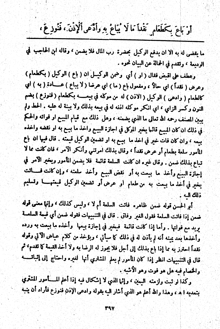 وَكَذَا لَوْ ثَبَتَ وَلَزِمَتْهُ الْيَمِينُ، وَإِنَّمَا الَّذِي لَا إشْكَالَ فِيهِ إذَا أَعْلَمَ الْمَأْمُورُ الْمُشْتَرِي بِتَعَدِّيهِ. اهـ. وَهَذَا وَاَللَّهُ أَعْلَمُ هُوَ الَّذِي أَشَارَ إلَيْهِ بِقَوْلِهِ وَادَّعَى الْإِذْنَ فَنُوزِعَ فَأَرَادَ أَنْ يُنَبِّهَ