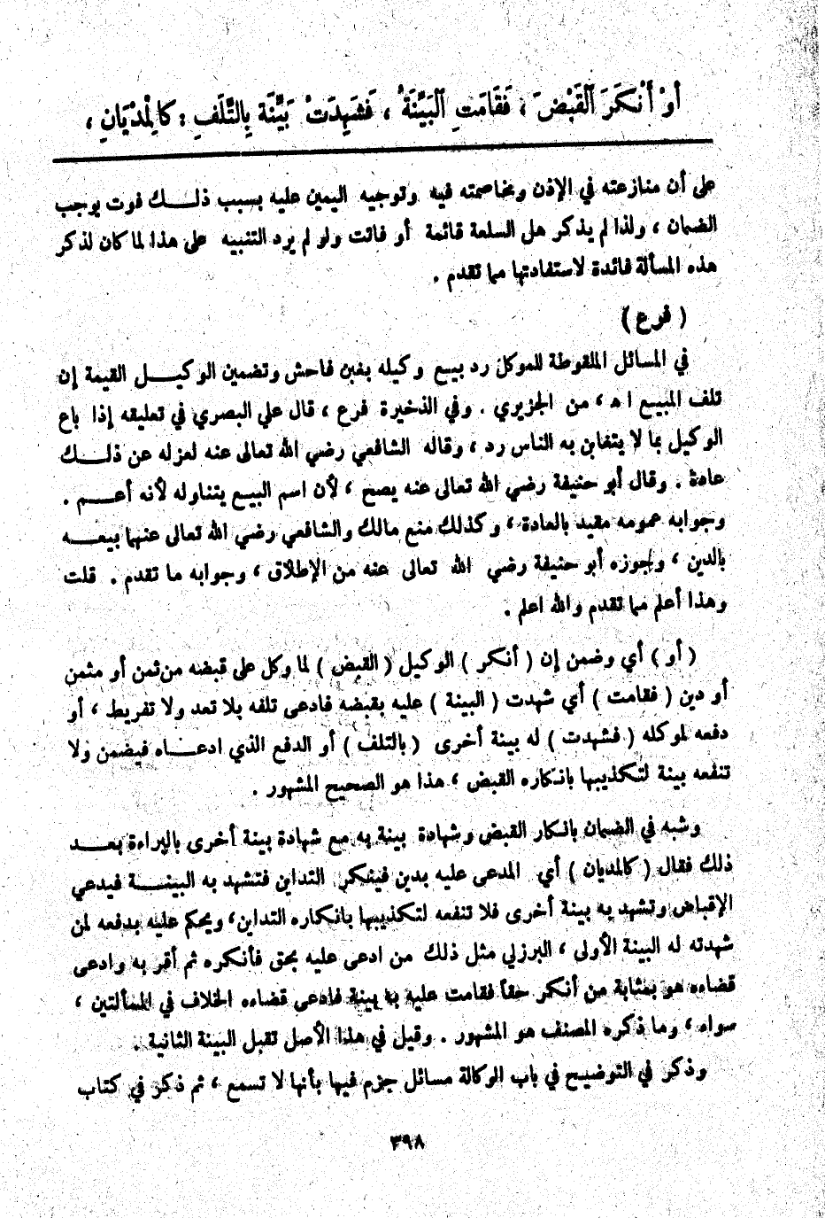 ـــــــــــــــــــــــــــــQعَلَى أَنَّ مُنَازَعَتَهُ فِي الْإِذْنِ وَمُخَاصَمَتَهُ فِيهِ وَتَوْجِيهَ الْيَمِينِ عَلَيْهِ بِسَبَبِ ذَلِكَ فَوْتٌ يُوجِبُ الضَّمَانَ، وَلِذَا لَمْ يَذْكُرْ هَلْ السِّلْعَةُ قَائِمَةٌ أَوْ فَاتَتْ وَلَوْ لَمْ يُرِدْ التَّنْبِيهَ عَلَى هَذَا لَمَا كَانَ لِذِكْرِ هَذِهِ الْمَسْأَلَةِ فَائِدَةٌ لَاسْتَفَادَتْهَا مِمَّا تَقَدَّمَ.