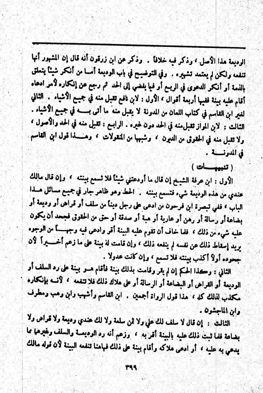 ـــــــــــــــــــــــــــــQالْوَدِيعَةِ هَذَا الْأَصْلَ، وَذَكَرَ فِيهِ خِلَافًا. وَذَكَرَ عَنْ ابْن زَرْقُونٍ أَنَّهُ قَالَ إنَّ الْمَشْهُورَ أَنَّهَا تَنْفَعُهُ وَلَكِنْ لَمْ يَعْتَمِدْ تَشْهِيرَهُ. وَفِي التَّوْضِيحِ فِي بَابِ الْوَدِيعَةِ أَمَّا مَنْ أَنْكَرَ شَيْئًا يَتَعَلَّقُ بِالذِّمَّةِ أَوْ أَنْكَرَ الدَّعْوَى فِي الرُّبُعِ أَوْ فِيمَا يُفْضِي إلَى الْحَدِّ ثُمَّ رَجَعَ عَنْ إنْكَارِهِ لِأَمْرٍ ادَّعَاهُ أَقَامَ عَلَيْهِ بَيِّنَةً فَفِيهَا أَرْبَعَةُ أَقْوَالٍ، الْأَوَّلُ: لِابْنِ نَافِعٍ تُقْبَلُ مِنْهُ فِي جَمِيعِ الْأَشْيَاءِ. الثَّانِي لِغَيْرِ ابْنِ الْقَاسِمِ فِي كِتَابِ اللِّعَانِ مِنْ الْمُدَوَّنَةِ لَا يُقْبَلُ مِنْهُ مَا أَتَى بِهِ فِي جَمِيعِ الْأَشْيَاءِ. الثَّالِثُ: لِابْنِ الْمَوَّازِ تُقْبَلُ مِنْهُ فِي الْحَدِّ دُونَ غَيْرِهِ. الرَّابِعُ: تُقْبَلُ مِنْهُ فِي الْحَدِّ وَالْأُصُولِ، وَلَا تُقْبَلُ مِنْهُ فِي الْحُقُوقِ مِنْ الدُّيُونِ، وَشَبَهِهَا مِنْ الْمَنْقُولَاتِ، وَهَذَا قَوْلُ ابْنِ الْقَاسِمِ فِي الْمُدَوَّنَةِ.