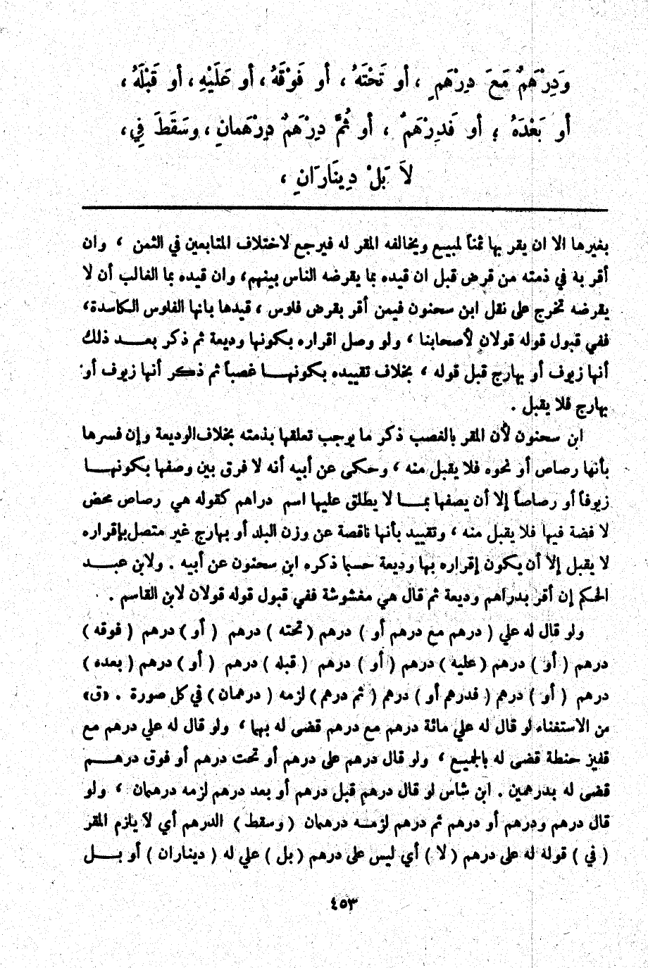 ابْنُ سَحْنُونٍ لِأَنَّ الْمُقِرَّ بِالْغَصْبِ ذَكَرَ مَا يُوجِبُ تَعَلُّقَهَا بِذِمَّتِهِ بِخِلَافِ الْوَدِيعَةِ وَإِنْ فَسَّرَهَا بِأَنَّهَا رَصَاصٌ أَوْ نَحْوُهُ فَلَا يُقْبَلُ مِنْهُ، وَحُكِيَ عَنْ أَبِيهِ أَنَّهُ لَا فَرْقَ بَيْنَ وَصْفِهَا بِكَوْنِهَا زُيُوفًا أَوْ رَصَاصًا إلَّا أَنْ يَصِفَهَا بِمَا لَا يُطْلَقُ عَلَيْهَا اسْمُ دَرَاهِمَ كَقَوْلِهِ هِيَ رَصَاصٌ مَحْضٌ لَا فِضَّةَ فِيهَا فَلَا يُقْبَلُ مِنْهُ، وَتَقْيِيدٌ بِأَنَّهَا نَاقِصَةٌ عَنْ وَزْنِ الْبَلَدِ أَوْ بَهَارِجُ غَيْرُ مُتَّصِلٍ بِإِقْرَارِهِ لَا يُقْبَلُ إلَّا أَنْ يَكُونَ إقْرَارُهُ بِهَا وَدِيعَةً حَسْبَمَا ذَكَرَهُ ابْنُ سَحْنُونٍ عَنْ أَبِيهِ. وَلِابْنِ عَبْدِ الْحَكَمِ إنْ أَقَرَّ بِدَرَاهِمَ وَدِيعَةٍ ثُمَّ قَالَ هِيَ مَغْشُوشَةٌ فَفِي قَبُولِ قَوْلِهِ قَوْلَانِ لِابْنِ الْقَاسِمِ.