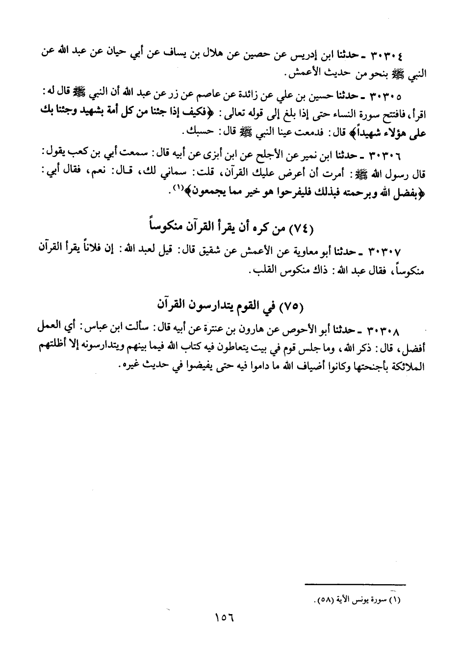 §مَنْ كَرِهَ أَنْ يَقْرَأَ الْقُرْآنَ مَنْكُوسًا