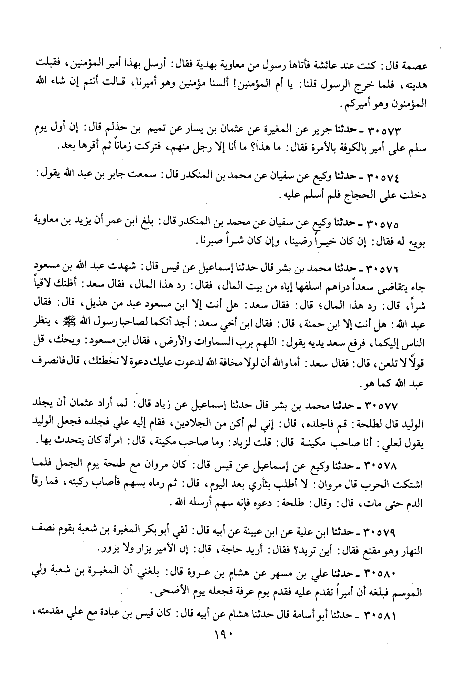 30574 - حَدَّثَنَا وَكِيعٌ عَنْ سُفْيَانَ عَنْ مُحَمَّدِ بْنِ الْمُنْكَدِرِ قَالَ: سَمِعْتُ جَابِرَ بْنَ عَبْدِ اللَّهِ يَقُولُ: «§دَخَلْتُ عَلَى الْحَجَّاجِ فَلَمْ أُسَلِّمْ عَلَيْهِ»