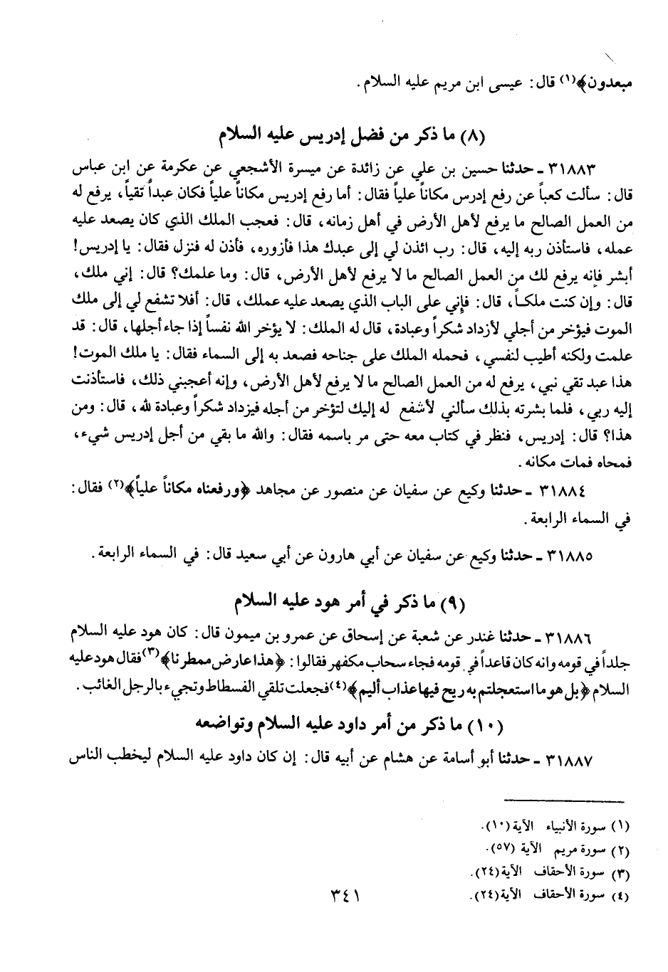 31884 - حَدَّثَنَا وَكِيعٌ، عَنْ سُفْيَانَ، عَنْ مَنْصُورٍ، عَنْ مُجَاهِدٍ، " {§وَرَفَعْنَاهُ مَكَانًا عَلِيًّا} [مريم: 57] فَقَالَ: فِي السَّمَاءِ الرَّابِعَةِ "