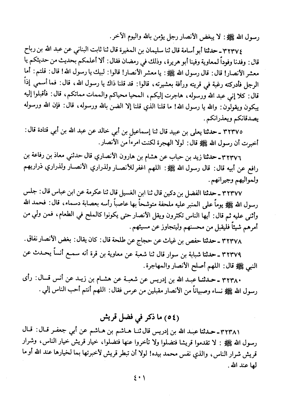 32378 - حَدَّثَنَا حَفْصُ بْنُ غِيَاثٍ، عَنْ حَجَّاجٍ، عَنْ طَلْحَةَ، قَالَ: كَانَ يُقَالُ: «§بُغْضُ الْأَنْصَارِ نِفَاقٌ»