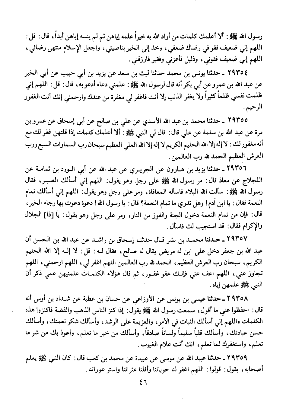 29358 - حَدَّثَنَا عِيسَى بْنُ يُونُسَ، عَنِ الْأَوْزَاعِيِّ، عَنْ حَسَّانَ بْنِ عَطِيَّةَ، عَنْ شَدَّادِ بْنِ أَوْسٍ، أَنَّهُ قَالَ: احْفَظُوا عَنِّي مَا أَقُولُ، سَمِعْتُ رَسُولَ اللَّهِ صَلَّى اللهُ عَلَيْهِ وَسَلَّمَ، يَقُولُ: «§إِذَا كَنَزَ النَّاسُ الذَّهَبَ وَالْفِضَّةَ فَاكْنِزُوا هَذِهِ الْكَلِمَاتِ، اللَّهُمَّ إِنِّي أَسْأَلُكَ الثَّبَاتَ فِي الْأَمْرِ، وَالْعَزِيمَةَ عَلَى الرُّشْدِ، وَأَسْأَلُكَ شُكْرَ نِعْمَتِكَ، وَأَسْأَلُكَ حُسْنَ عِبَادَتِكَ، وَأَسْأَلُكَ قَلْبًا سَلِيمًا، وَلِسَانًا صَادِقًا، وَأَسْأَلُكَ مِنْ خَيْرِ مَا تَعْلَمُ، وَأَعُوذُ بِكَ مِنْ شَرِّ مَا تَعْلَمُ، وَأَسْتَغْفِرُكَ لِمَا تَعْلَمُ، إِنَّكَ أَنْتَ عَلَّامُ الْغُيُوبِ»