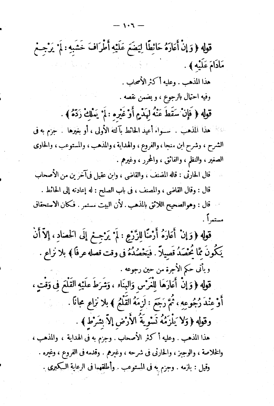 قَوْلُهُ (وَإِنْ أَعَارَهُ حَائِطًا لِيَضَعَ عَلَيْهِ أَطْرَافَ خَشَبِهِ: لَمْ يَرْجِعْ مَا دَامَ عَلَيْهِ) . هَذَا الْمَذْهَبُ وَعَلَيْهِ أَكْثَرُ الْأَصْحَابِ. وَفِيهِ احْتِمَالٌ بِالرُّجُوعِ، وَيَضْمَنُ نَقْصَهُ. قَوْلُهُ (فَإِنْ سَقَطَ عَنْهُ لِهَدْمٍ أَوْ غَيْرِهِ: لَمْ يَمْلِكْ رَدَّهُ) . هَذَا الْمَذْهَبُ سَوَاءٌ أُعِيدَ الْحَائِطُ بِآلَتِهِ الْأُولَى، أَوْ بِغَيْرِهَا. جَزَمَ بِهِ فِي الشَّرْحِ، وَشَرْحِ ابْنِ مُنَجَّا، وَالْفُرُوعِ، وَالْهِدَايَةِ، وَالْمُذْهَبِ، وَالْمُسْتَوْعِبِ، وَالْحَاوِي الصَّغِيرِ، وَالنَّظْمِ، وَالْفَائِقِ، وَالْمُحَرَّرِ، وَغَيْرِهِمْ. قَالَ الْحَارِثِيُّ: قَالَهُ الْمُصَنِّفُ، وَالْقَاضِي، وَابْنُ عَقِيلٍ فِي آخَرِينَ مِنْ الْأَصْحَابِ قَالَ: وَقَالَ الْقَاضِي، وَالْمُصَنِّفُ، فِي بَابِ الصُّلْحِ: لَهُ إعَادَتُهُ إلَى الْحَائِطِ. قَالَ: وَهُوَ الصَّحِيحُ اللَّائِقُ بِالْمَذْهَبِ. لِأَنَّ الْبَيْتَ مُسْتَمِرٌّ. فَكَانَ الِاسْتِحْقَاقُ مُسْتَمِرًّا.