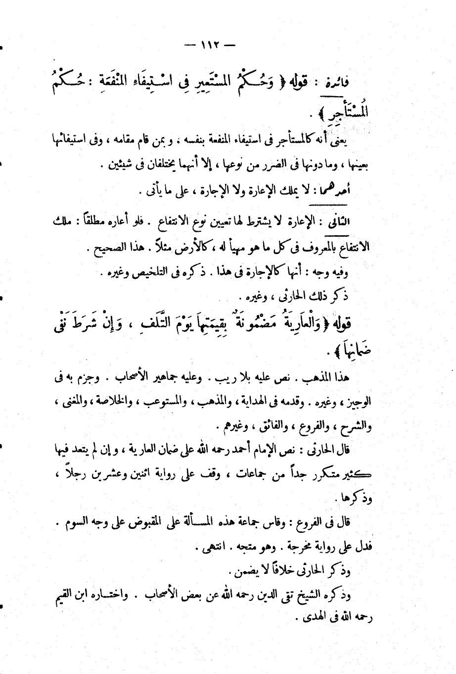 فَائِدَةٌ: قَوْلُهُ (وَحُكْمُ الْمُسْتَعِيرِ فِي اسْتِيفَاءِ الْمَنْفَعَةِ: حُكْمُ الْمُسْتَأْجِرِ) . يَعْنِي أَنَّهُ كَالْمُسْتَأْجِرِ فِي اسْتِيفَاءِ الْمَنْفَعَةِ بِنَفْسِهِ. وَبِمَنْ قَامَ مَقَامَهُ، وَفِي اسْتِيفَائِهَا بِعَيْنِهَا، وَمَا دُونَهَا فِي الضَّرَرِ مِنْ نَوْعِهَا، إلَّا أَنَّهُمَا يَخْتَلِفَانِ فِي شَيْئَيْنِ.