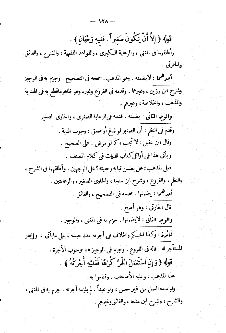 قَوْلُهُ (إلَّا أَنْ يَكُونَ صَغِيرًا. فَفِيهِ وَجْهَانِ) . وَأَطْلَقَهُمَا فِي الْمُغْنِي، وَالرِّعَايَةِ الْكُبْرَى، وَالْقَوَاعِدِ الْفِقْهِيَّةِ، وَالشَّرْحِ، وَالْفَائِقِ وَالْحَارِثِيُّ.