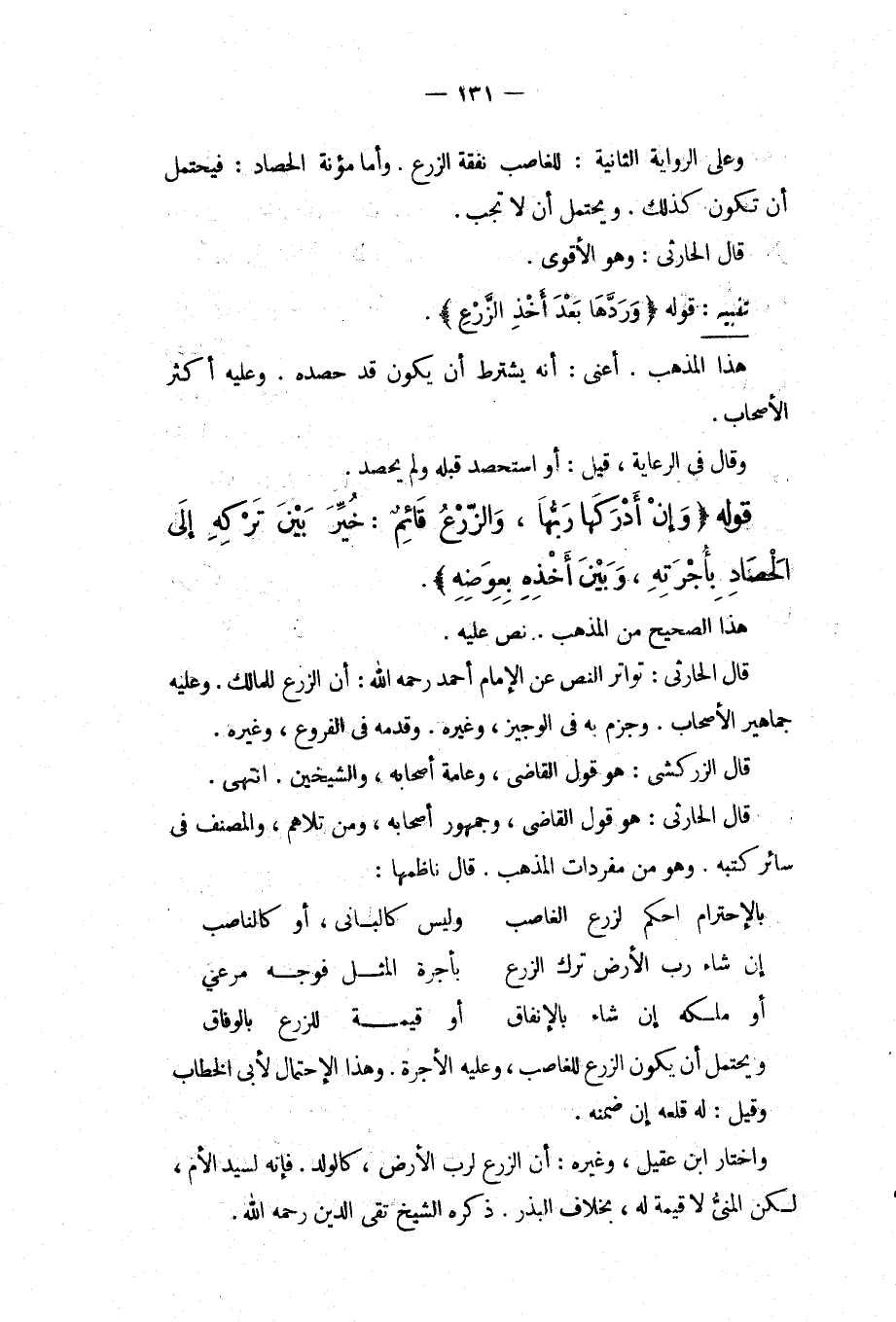 إنْ شَاءَ رَبُّ الْأَرْضِ تَرْكَ الزَّرْعِ ... بِأُجْرَةِ الْمِثْلِ فَوَجْهٌ مَرْعِي