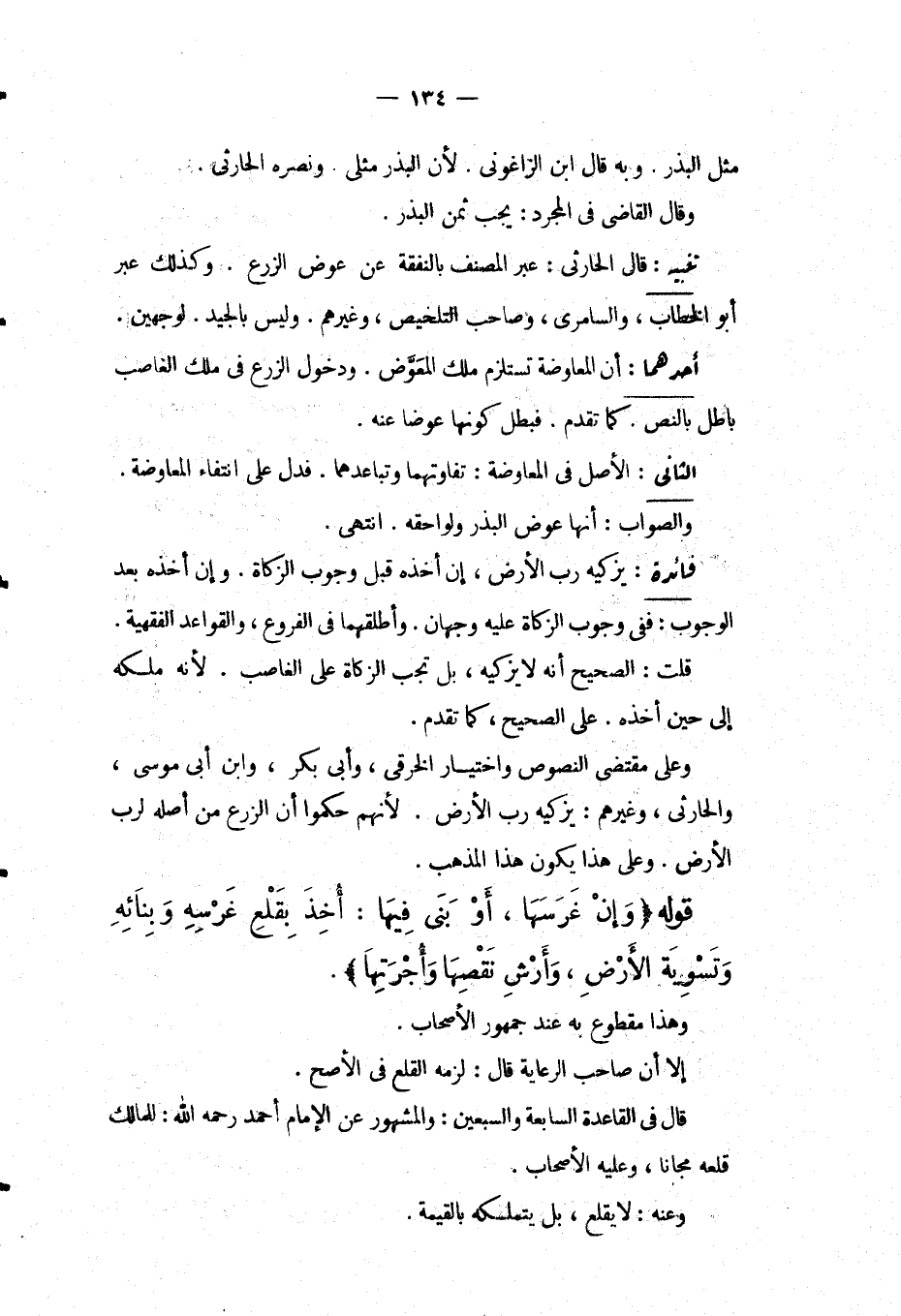 تَنْبِيهٌ: قَالَ الْحَارِثِيُّ: عَبَّرَ الْمُصَنِّفُ بِالنَّفَقَةِ عَنْ عِوَضِ الزَّرْعِ. وَكَذَلِكَ عَبَّرَ أَبُو الْخَطَّابِ، وَالسَّامِرِيُّ، وَصَاحِبُ التَّلْخِيصِ، وَغَيْرُهُمْ. وَلَيْسَ بِالْجَيِّدِ. لِوَجْهَيْنِ.