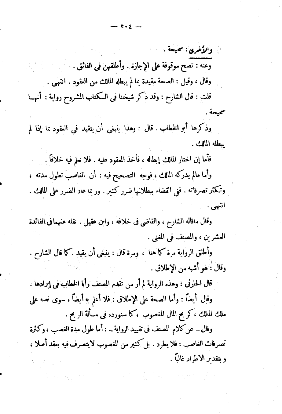 وَالْأُخْرَى: صَحِيحَةٌ. وَعَنْهُ: تَصِحُّ مَوْقُوفَةً عَلَى الْإِجَازَةِ. وَأَطْلَقَهُنَّ فِي الْفَائِقِ. وَقَالَ، وَقِيلَ: الصِّحَّةُ مُقَيَّدَةٌ بِمَا لَمْ يُبْطِلْهُ الْمَالِكُ مِنْ الْعُقُودِ. انْتَهَى. قُلْت: قَالَ الشَّارِحُ: وَقَدْ ذَكَرَ شَيْخُنَا فِي الْكِتَابِ الْمَشْرُوحِ رِوَايَةً: أَنَّهَا صَحِيحَةٌ. وَذَكَرَهَا أَبُو الْخَطَّابِ. قَالَ: وَهَذَا يَنْبَغِي أَنْ يَتَقَيَّدَ فِي الْعُقُودِ بِمَا إذَا لَمْ يُبْطِلْهُ الْمَالِكُ. فَأَمَّا إنْ اخْتَارَ الْمَالِكُ إبْطَالَهُ، فَأَخَذَ الْمَعْقُودَ عَلَيْهِ. فَلَا نَعْلَمُ فِيهِ خِلَافًا. وَأَمَّا مَا لَمْ يُدْرِكْهُ الْمَالِكُ، فَوَجْهُ التَّصْحِيحِ فِيهِ: أَنَّ الْغَاصِبَ تَطُولُ مُدَّتُهُ، وَتَكْثُرُ تَصَرُّفَاتُهُ. فَفِي الْقَضَاءِ بُطْلَانُهَا ضَرَرٌ كَثِيرٌ. وَرُبَّمَا عَادَ الضَّرَرُ عَلَى الْمَالِكِ. انْتَهَى. وَقَالَ مَا قَالَهُ الشَّارِحُ، وَالْقَاضِي فِي خِلَافِهِ، وَابْنُ عَقِيلٍ. نَقَلَهُ عَنْهُمَا فِي الْفَائِدَةِ الْعِشْرِينَ، وَالْمُصَنِّفُ فِي الْمُغْنِي. وَأَطْلَقَ الرِّوَايَةَ مَرَّةً كَمَا هُنَا، وَمَرَّةً قَالَ: يَنْبَغِي أَنْ يُقَيِّدَ. كَمَا قَالَ الشَّارِحُ. وَقَالَ: هُوَ أَشْبَهُ مِنْ الْإِطْلَاقِ. قَالَ الْحَارِثِيُّ: وَهَذِهِ الرِّوَايَةُ لَمْ أَرَ مَنْ تَقَدَّمَ الْمُصَنِّفَ وَأَبَا الْخَطَّابَ فِي إيرَادِهَا. وَقَالَ أَيْضًا: وَأَمَّا الصِّحَّةُ عَلَى الْإِطْلَاقِ: فَلَا أَعْلَمُ بِهِ أَيْضًا، سِوَى نَصِّهِ عَلَى مِلْكِ الْمَالِكِ. كَرِبْحِ الْمَالِ الْمَغْصُوبِ، كَمَا سَنُورِدُهُ فِي مَسْأَلَةِ الرِّبْحِ. وَقَالَ عَنْ كَلَامِ الْمُصَنِّفِ فِي تَقْيِيدِ الرِّوَايَةِ: أَمَّا طُولُ مُدَّةِ الْغَصْبِ، وَكَثْرَةُ تَصَرُّفَاتِ الْغَاصِبِ: فَلَا يَطَّرِدُ. بَلْ كَثِيرٌ مِنْ الْمَغْصُوبِ لَا يُتَصَرَّفُ فِيهِ بِعَقْدٍ أَصْلًا، وَبِتَقْدِيرِ الِاطِّرَادِ غَالِبًا.