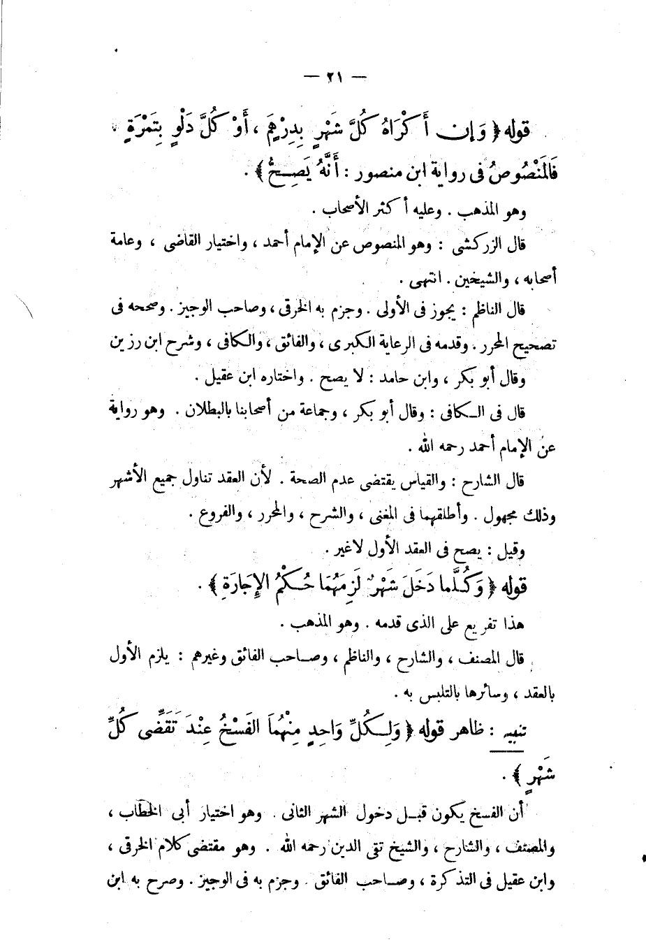 تَنْبِيهٌ: ظَاهِرُ قَوْلِهِ (وَلِكُلِّ وَاحِدٍ مِنْهُمَا الْفَسْخُ عِنْدَ تَقَضِّي كُلِّ شَهْرٍ) . أَنَّ الْفَسْخَ يَكُونُ قَبْلَ دُخُولِ الشَّهْرِ الثَّانِي. وَهُوَ اخْتِيَارُ أَبِي الْخَطَّابِ، وَالْمُصَنِّفِ، وَالشَّارِحِ، وَالشَّيْخِ تَقِيِّ الدِّينِ - رَحِمَهُ اللَّهُ -. وَهُوَ مُقْتَضَى كَلَامِ الْخِرَقِيِّ، وَابْنِ عَقِيلٍ فِي التَّذْكِرَةِ. وَصَاحِبِ الْفَائِقِ. وَجَزَمَ بِهِ فِي الْوَجِيزِ. وَصَرَّحَ بِهِ