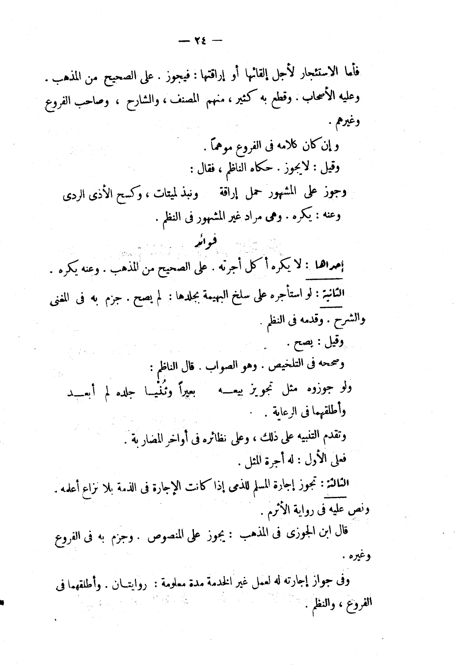 الثَّالِثَةُ: تَجُوزُ إجَارَةُ الْمُسْلِمِ لِلذِّمِّيِّ إذَا كَانَتْ الْإِجَارَةُ فِي الذِّمَّةِ بِلَا نِزَاعٍ أَعْلَمُهُ. وَنَصّ عَلَيْهِ فِي رِوَايَةِ الْأَثْرَمِ. قَالَ ابْنُ الْجَوْزِيِّ فِي الْمُذْهَبِ: يَجُوزُ عَلَى الْمَنْصُوصِ. وَجَزَمَ بِهِ فِي الْفُرُوعِ وَغَيْرِهِ. وَفِي جَوَازِ إجَارَتِهِ لَهُ لِعَمَلٍ غَيْرِ الْخِدْمَةِ مُدَّةً مَعْلُومَةً: رِوَايَتَانِ. وَأَطْلَقَهُمَا فِي الْفُرُوعِ، وَالنَّظْمِ.